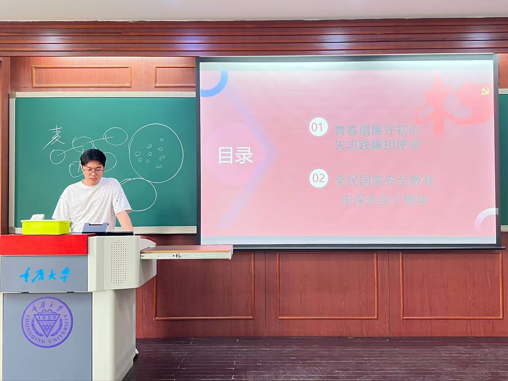 活动尾声,经济学01班团支书黎豪对本次活动进行了总结。他充分肯定了同学们在活动中展现出的热情和活力,强调此次团日活动不仅加深了大家对廉洁文化重要性的理解和认识,更激发了大家对于学习国家安全教育的相关知识与维护国家安全义务的热情与决心。