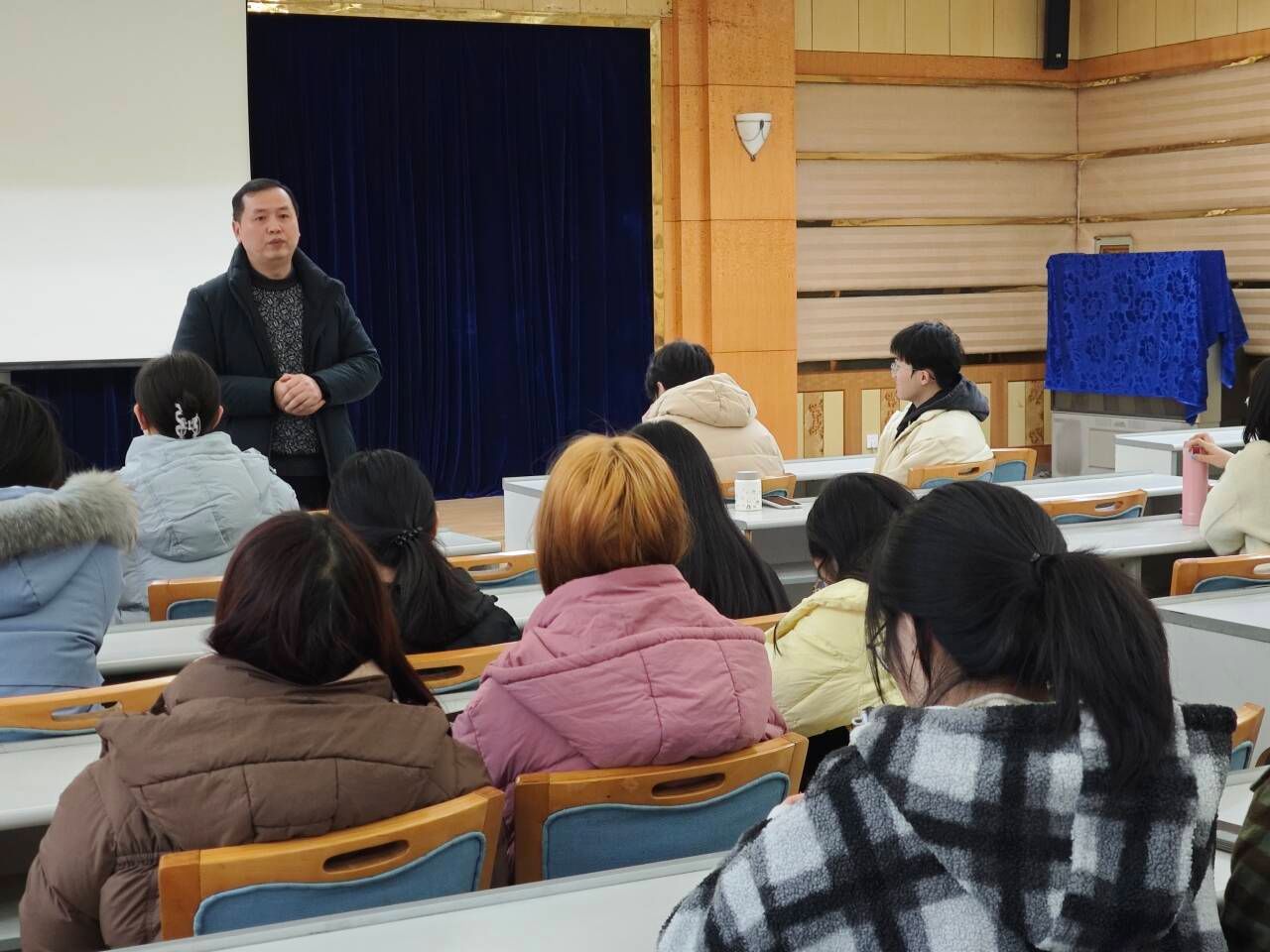 本次班会的主要议题是新学期新计划与未来发展规划。活动伊始,周洲老师耐心疏导学生们的考学就业压力,提出未来发展规划的主要方向。