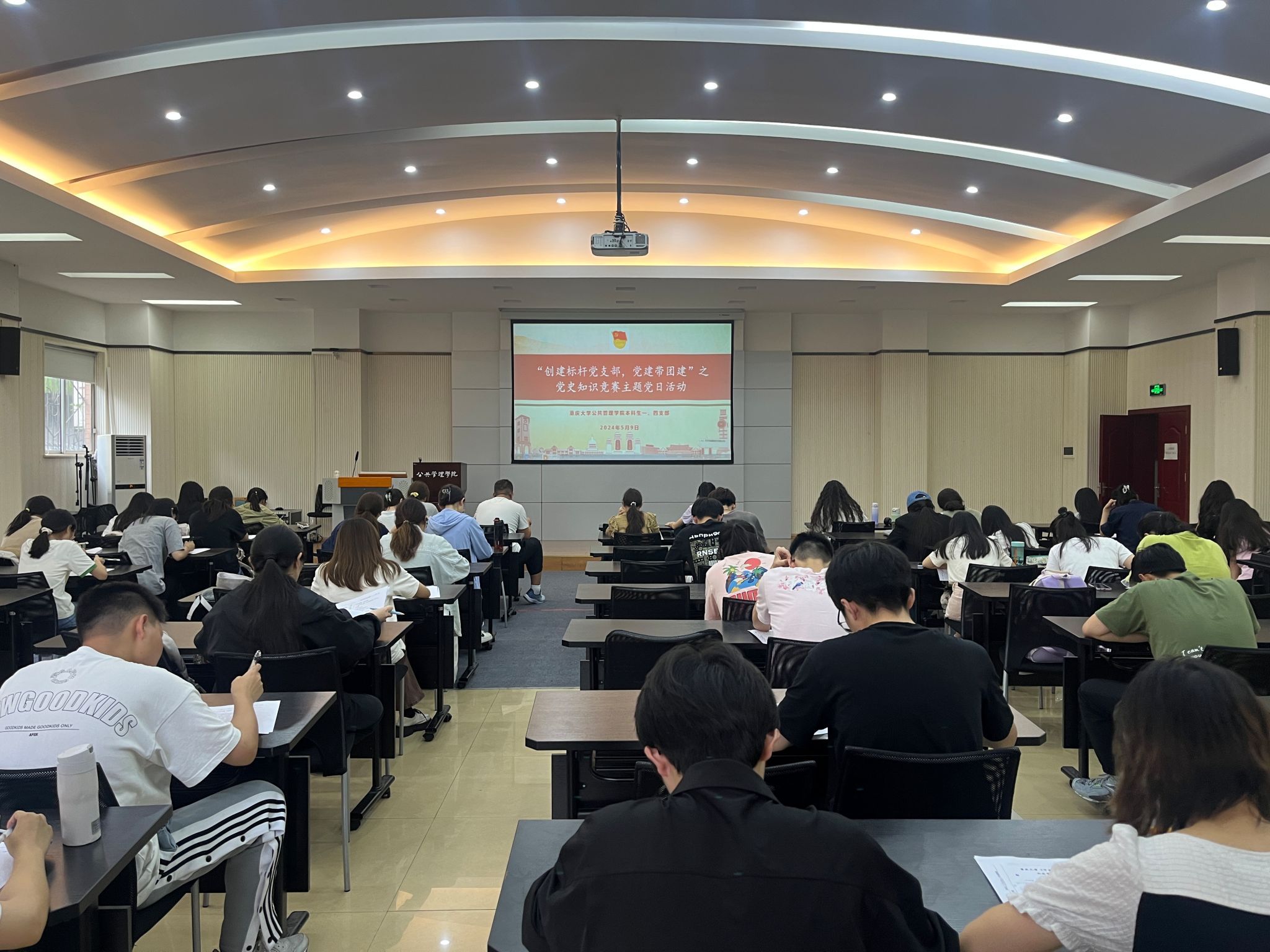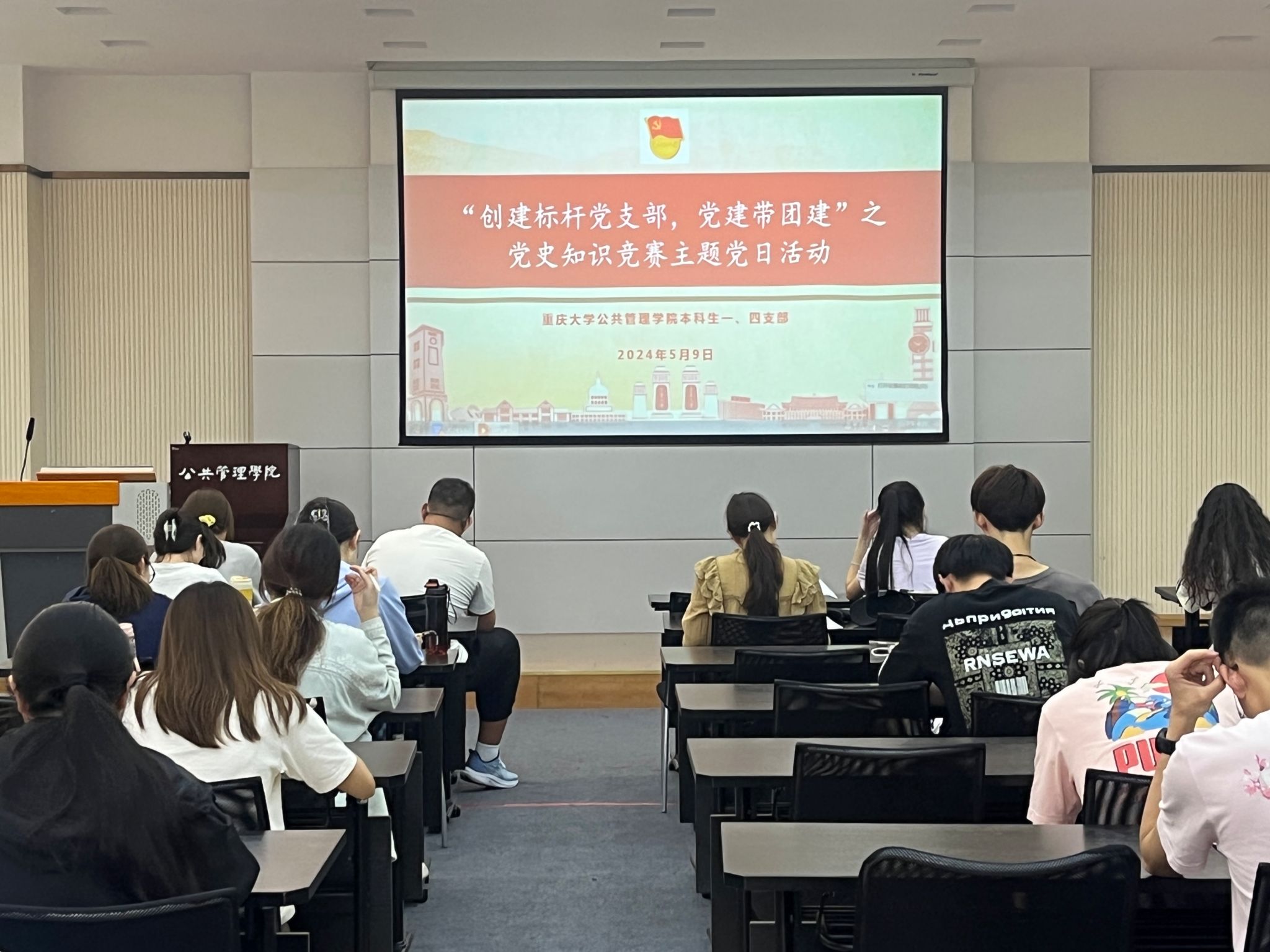竞赛有始终,学习无止境。2024年5月9日18:00,“党史知识竞赛”主题党日活动在学院楼102多功能厅圆满落幕。此次党日活动,主题鲜明,形式丰富,这不仅是一场党史知识竞赛,更是一堂生动有趣的党课。本科生一、四支部将以此次活动为契机,持续加强党建带团建、创建标杆支部的政治理论学习,不断提高党员以及入党积极分子的政治素养和业务能力。