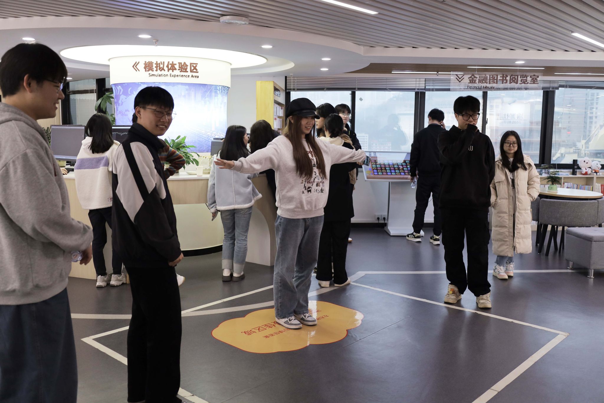 在中信建投期货投教基地的讲解老师刘帅康带领下,全体同学参观名企内部共八个功能区域——渝时俱进,展现期货发展历史;渝道正源,普及解读金融知识;渝富兴邦,融合服务实体与财富管理;渝警杜渐,揭示金融理财潜在风险;渝教于乐,互动体验期货魅力;渝新普惠,多样化展示投教产品;渝云博学,交流分享投资理念;意见征集,集思广益改进服务水品。