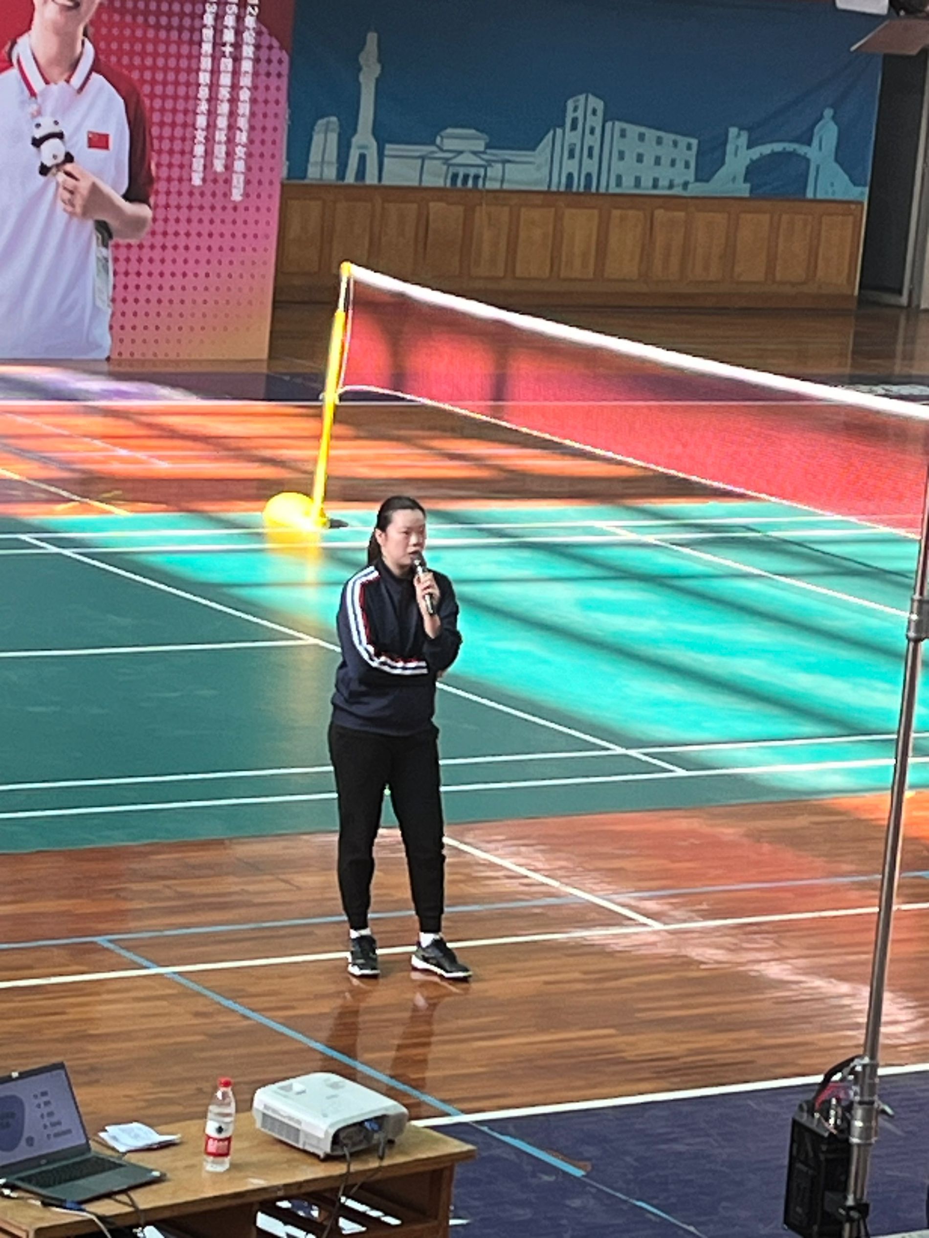 讲座过程中,李雪芮亲自示范了一些关于羽毛球技巧的动作,并指导学生们正确的姿势和击球方式。学生们积极参与,从中学习到了许多羽毛球训练和比赛的技巧。