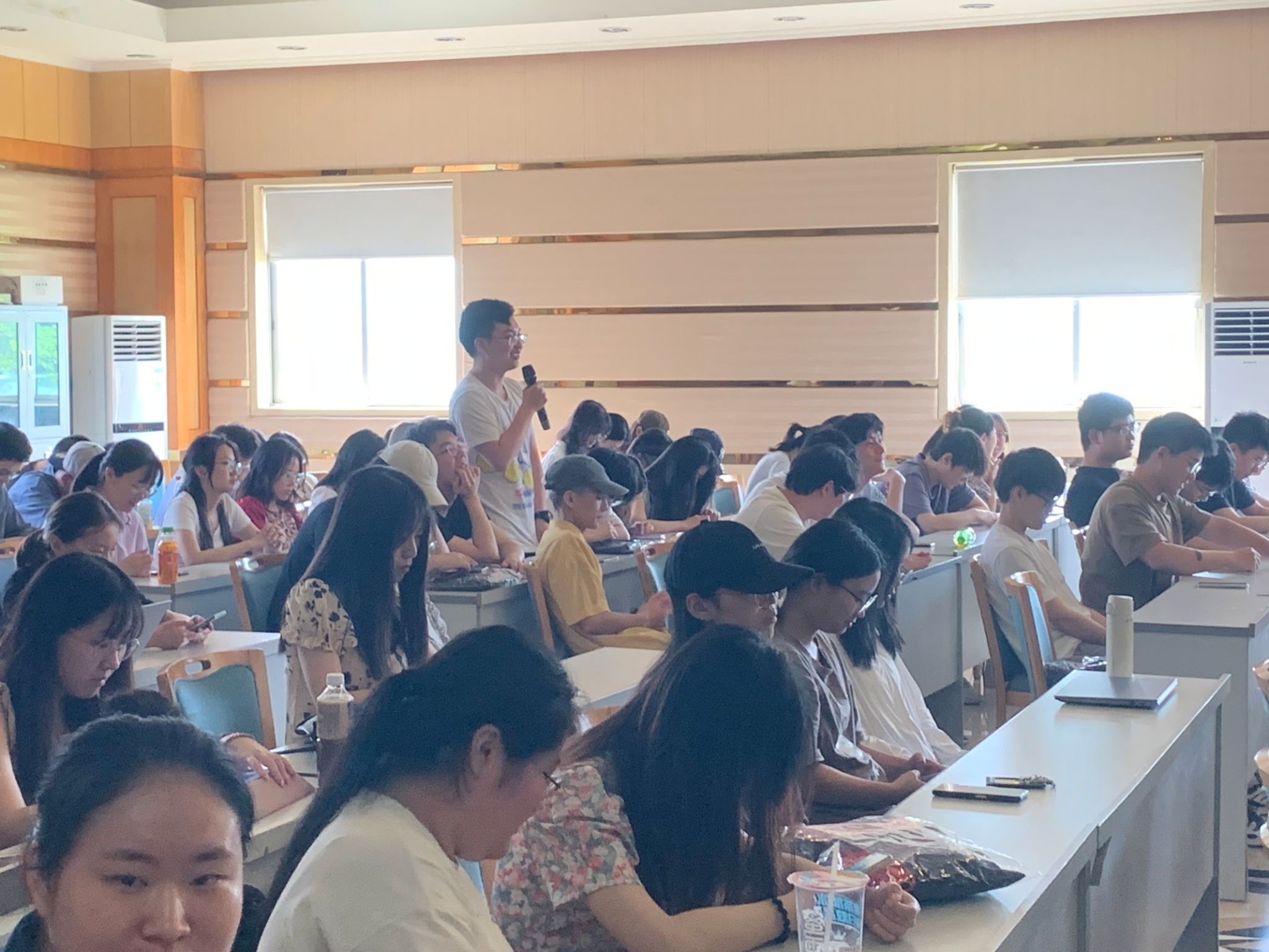 在活动开始前,主持人先介绍了本次分享会的举办目的和活动流程。接着,由袁书记进行分享。他先是对各位毕业年级的同学表示祝贺,然后围绕升学和就业两大主题,提醒同学们要注意正确处理压力、保持良好的心态。同时,他对同学们提出了殷切期望,希望同学们一定要勇于承担责任,扬长避短,在竞争中脱颖而出。最后,袁书记再次表达了对毕业生的祝福,希望大家都能活出自己的精彩人生。