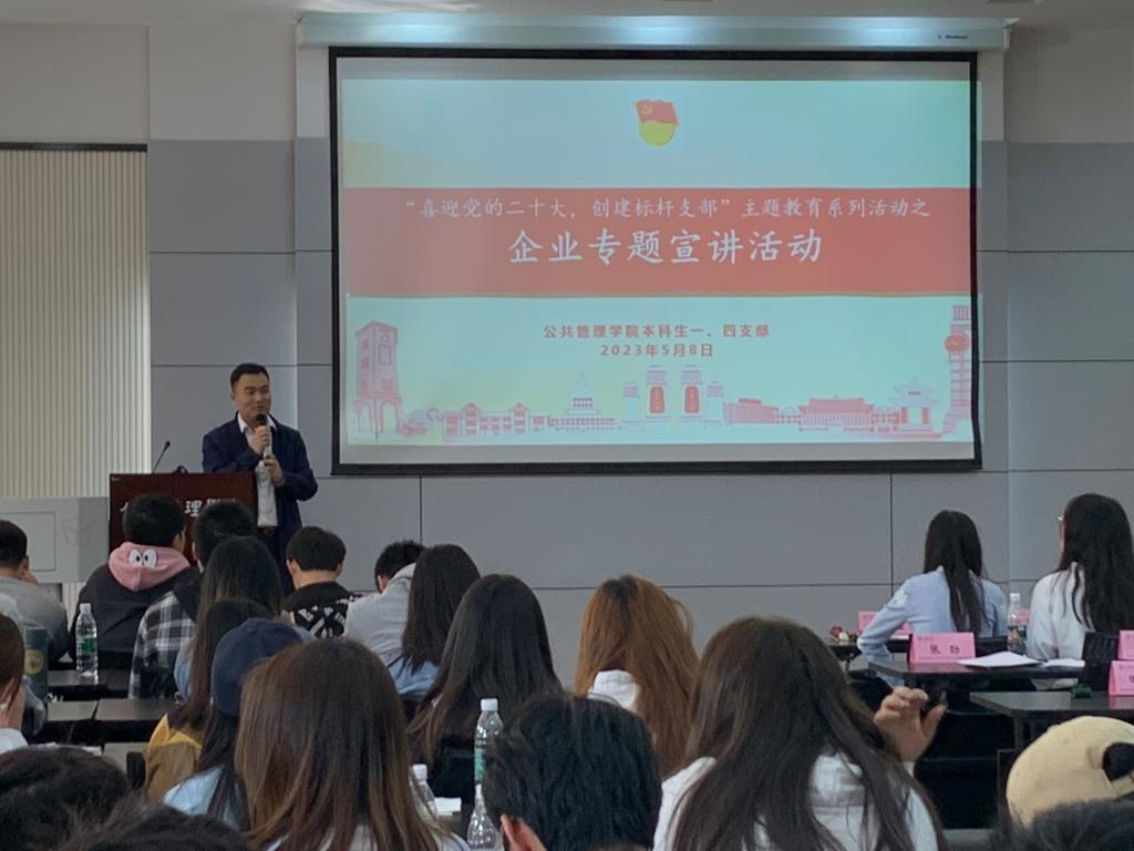 楼102教室开展了“践行党的二十大,创建标杆支部”我为师生办实事系列活动之企业专题宣讲活动。