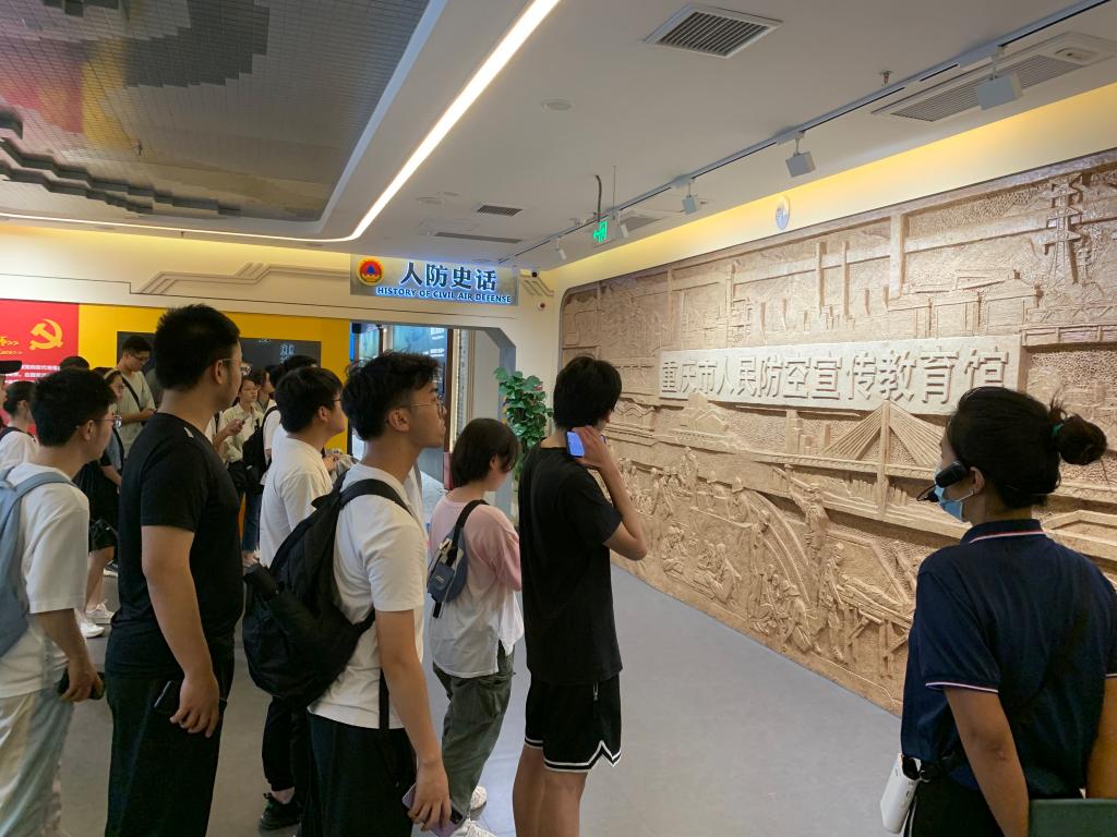2023年4月20日下午,师生前往重庆市人民防空宣传教育馆进行参观学习。重庆市人民防空宣传教育馆坐落于重庆市渝中区虎头岩公园,由一个地上人防科普主展区和军事瞭望台、地下军事要塞展示区组成,是重庆中心城区最大的人民防空宣教馆。