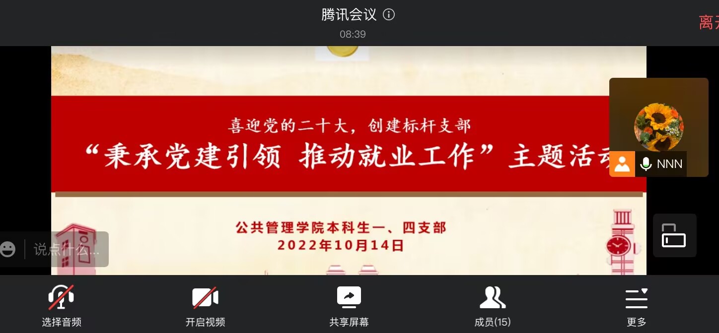 本科生一、四支部全体党员参会,其中未返校同志于腾讯会议聆听此次宣讲会。此次活动分为主题引入、简历制作、招聘信息和交流分享四个部分。