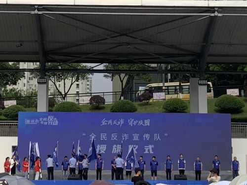 等校企代表授旗,建立“全民反诈宣传队”,推动重庆防骗防诈进程。至此,启动仪式结束。