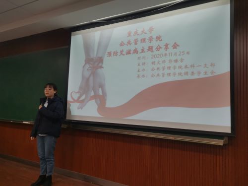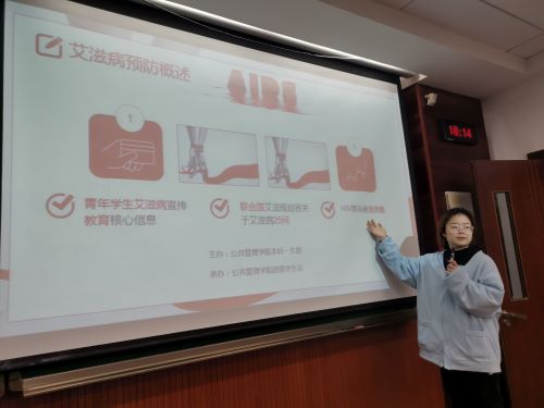 本科生一支部主办,团委学生会承办,2020级全体入党积极分子积极参与。该系列活动涉及艾滋病传播途径、检测方式、预防措施、社会影响等各个方面,以举办“知艾防艾,强化预防”主题团日活动、演讲比赛、知识讲座、知识竞赛等形式展开,反响良好。