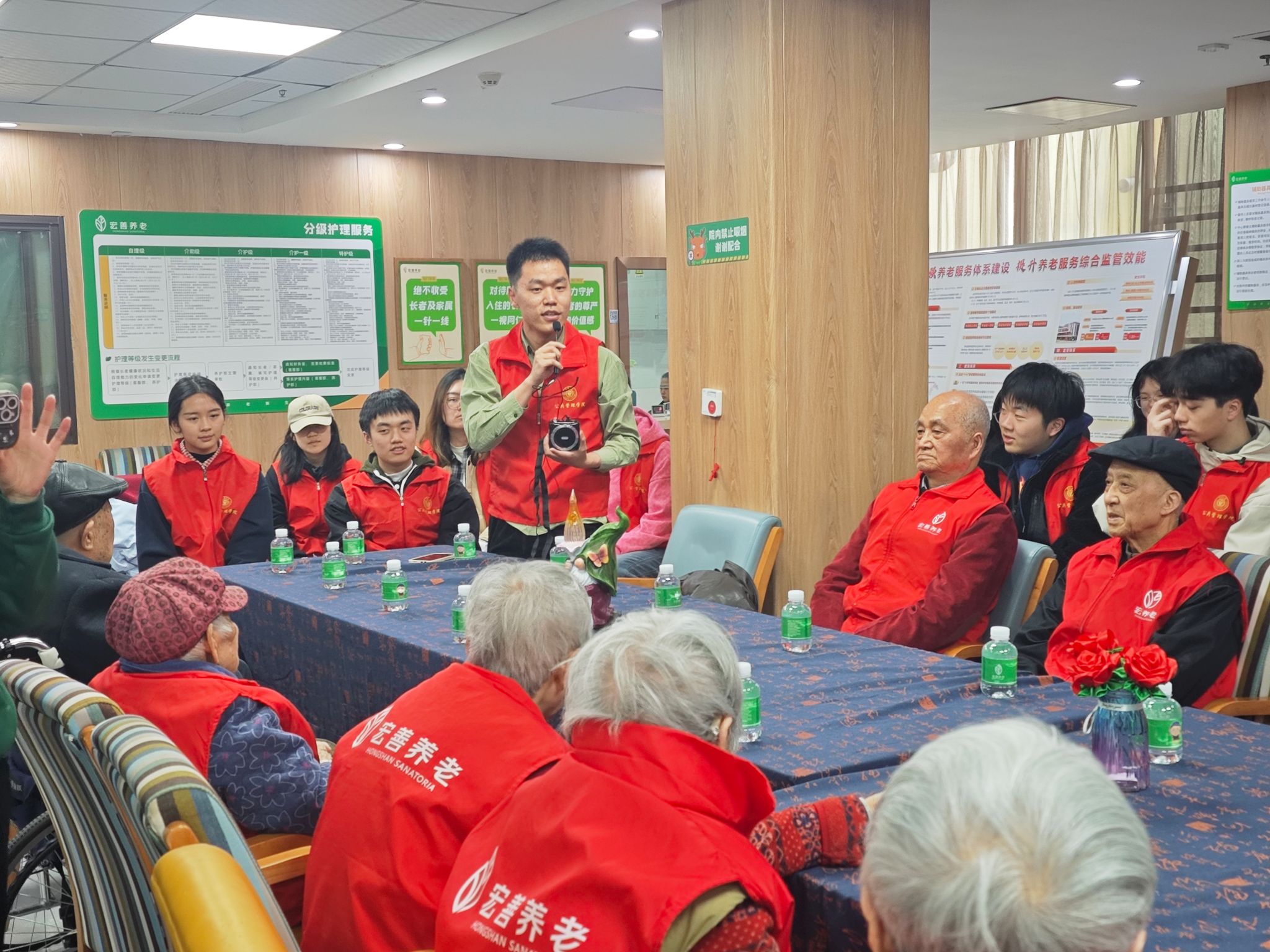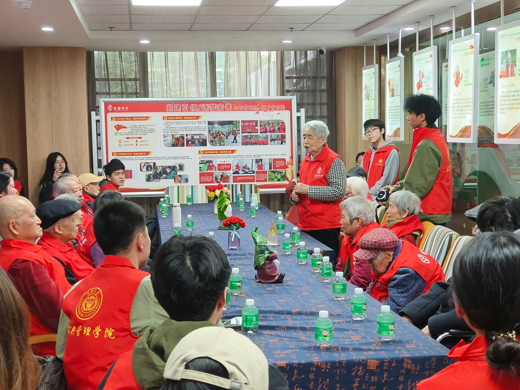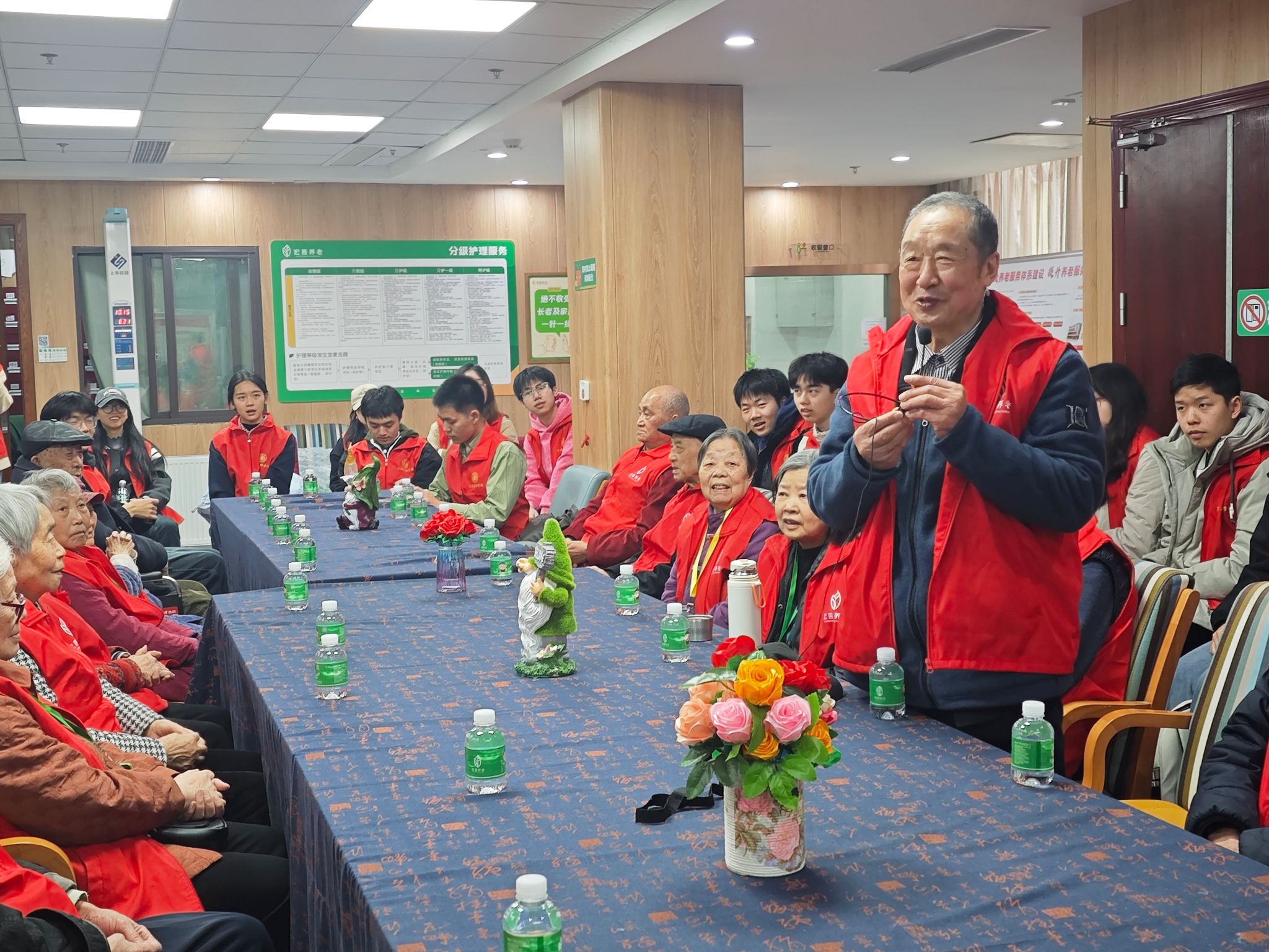 本科生三、六支部与学院团委携手重庆市石桥铺街道张坪社区养老服务中心,共同策划和组织了“党建带团建 学雷锋·金晖映红岩”志愿服务活动,37名学生党员、入党积极分子和共青团员积极参与到活动中。