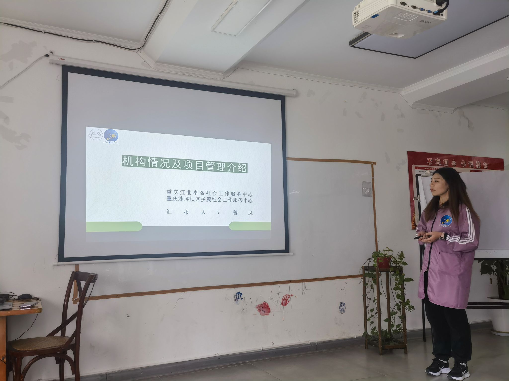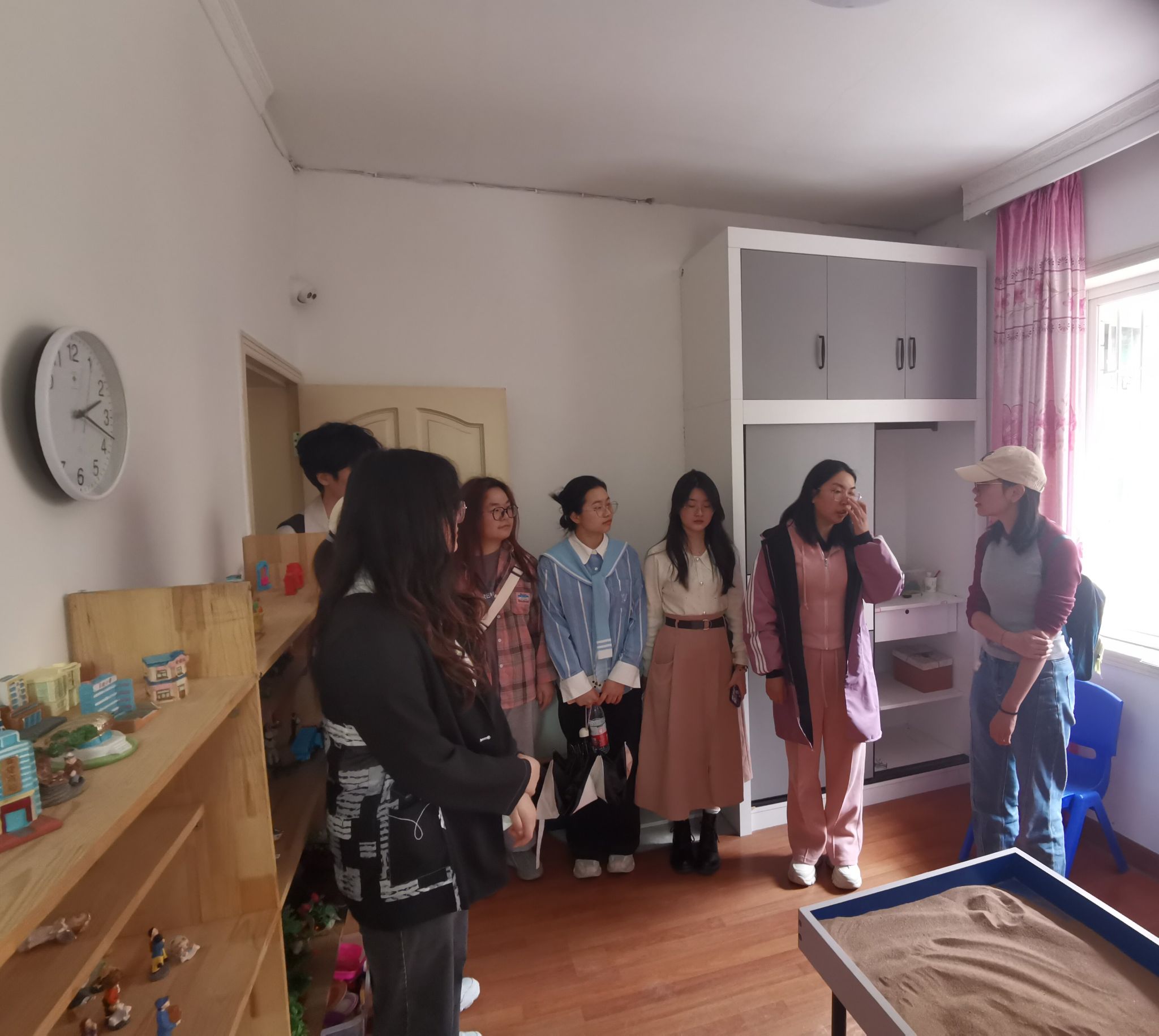 3月29日,本次活动的志愿服务团队代表前往重庆市卓弘社工服务中心,在中心社工老师的带领下参观了服务中心的行政办公区域、儿童训练场地、游戏治疗沙盘室、家长集体课多功能教室和心理咨询室等基础设施,重点介绍了中心针对迟滞儿童“护翼远航”项目与“陪我到春暖花开”项目,同时也向同学们介绍了中心的服务理念与运行模式。