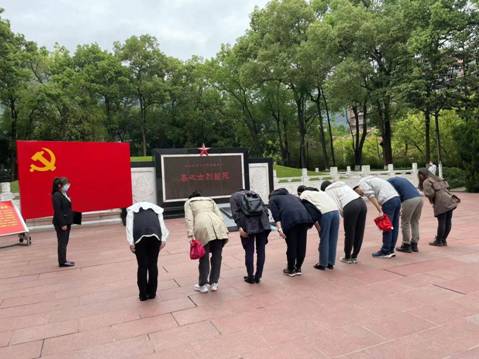 参观结束后,大家来到烈士墓进行祭扫活动,全体人员瞻仰烈士纪念碑,集体肃立默哀,向红岩英烈行三鞠躬礼,表达对革命先烈的庄严哀悼,寄托对革命先烈的深切思念与崇高敬意。默哀仪式结束后,大家依次为烈士献上鲜花。