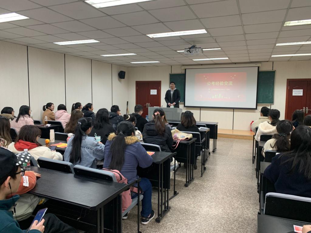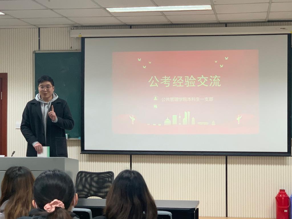 本科生一、四支部于学院楼102教室举办“喜迎党的二十大,创建标杆支部”主题教育系列活动之我为师生办实事:考公经验交流分享会活动。