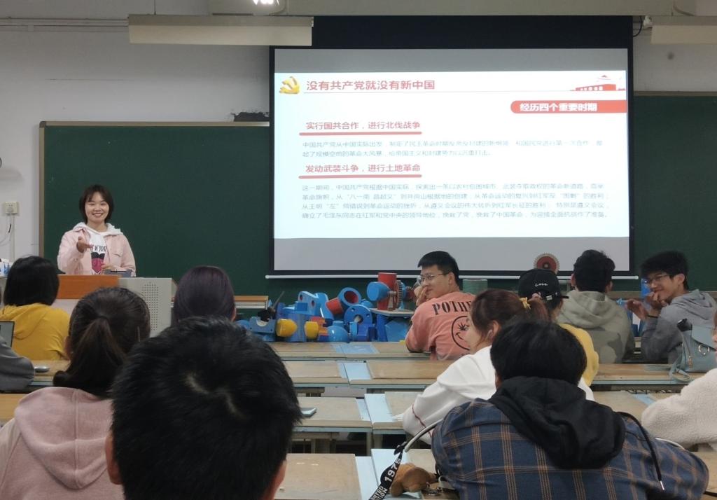 本次活动以主讲人讲授为主、观看有关党史的视频为辅的形式展开。各位主讲人从新中国的成立、社会主义制度在中国的建立、中国特色社会主义道路的摸索到党的百年光辉历程给我们的启示,依次展示了中国共产党不懈奋斗的历史,为全体与会人员带来一场视听盛宴。其中,王丽娟同志结合内容详实、生动形象的演示文稿,为同学们娓娓道来中国共产党成立以来走过的艰辛岁月和开辟的巨大工程。党的光辉历史犹如一幅幅画卷在同学们面前展开,中国共产党人的崇高精神和家国情怀让同学们为之震撼。徐柳同志则以自身的成长经历为切入点,再现我国在中国共产党的带领下在政治、经济、民生等方面翻天覆地的变化,呼吁同学们珍惜这来之不易的幸福生活,以真切的行动回报党和祖国。台上精彩的讲述感染了在场的各位同学,赢得了阵阵掌声。
