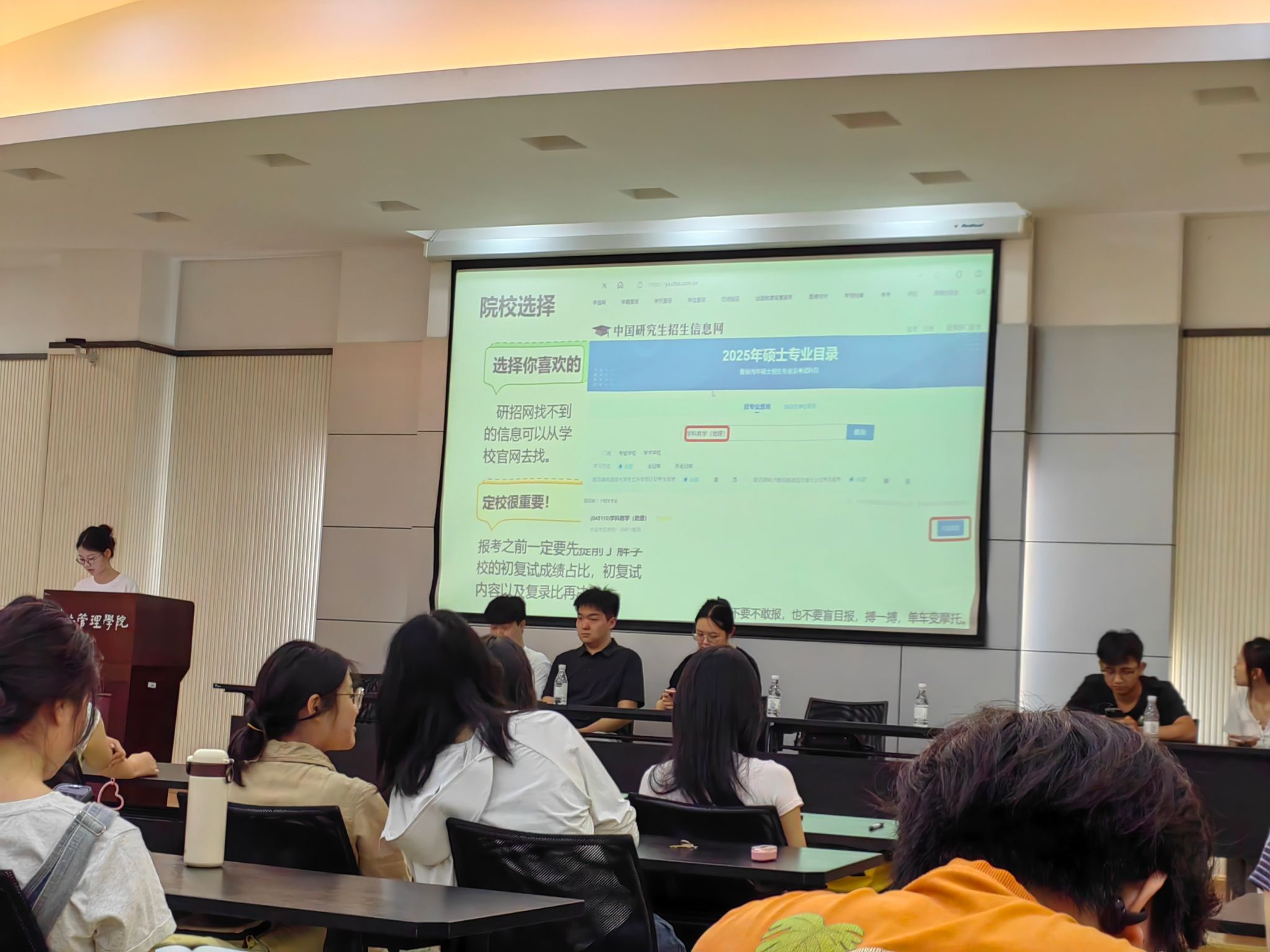 2025年6月19日13:00,为帮助22级的同学明晰发展路径,本科生一支部发挥样板支部示范引领作用,联合本科生第四党支部举办“21级学长学姐经验交流分享会”,聚焦考公、考研、留学、就业四大方向,邀请8位优秀21级学长学姐深度分享成长经验,全年级159名同学积极到现场参与。