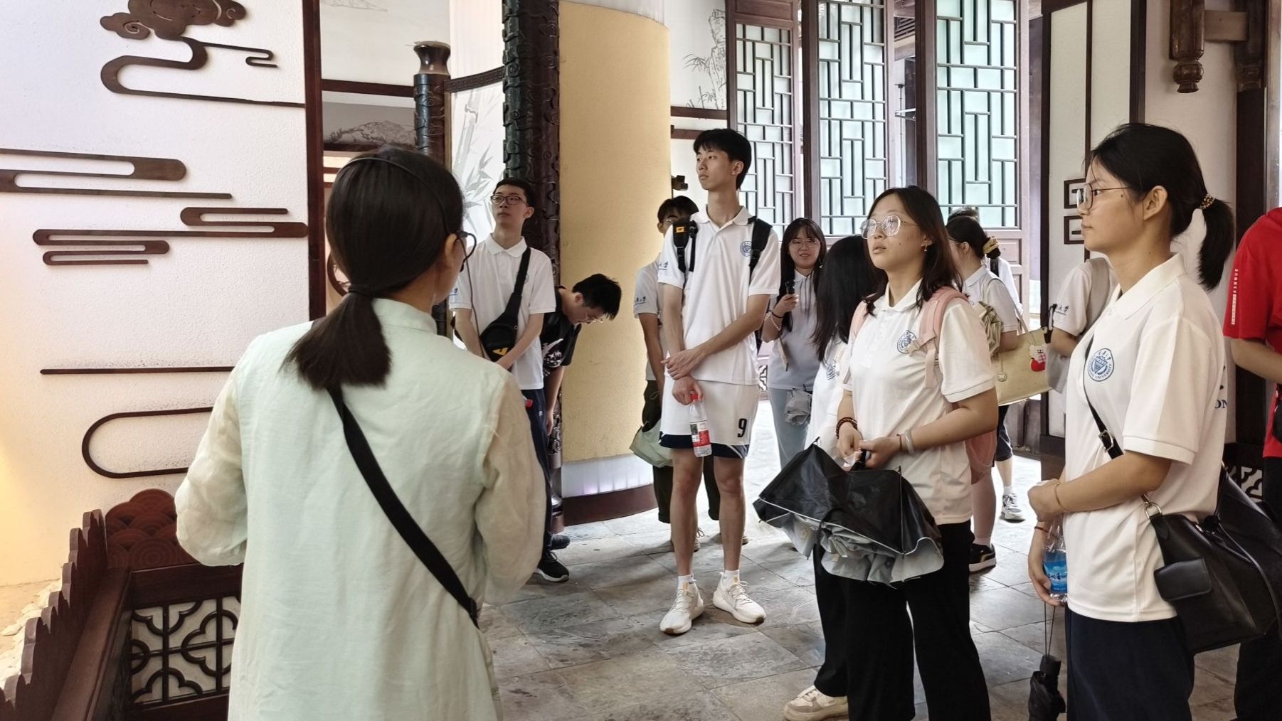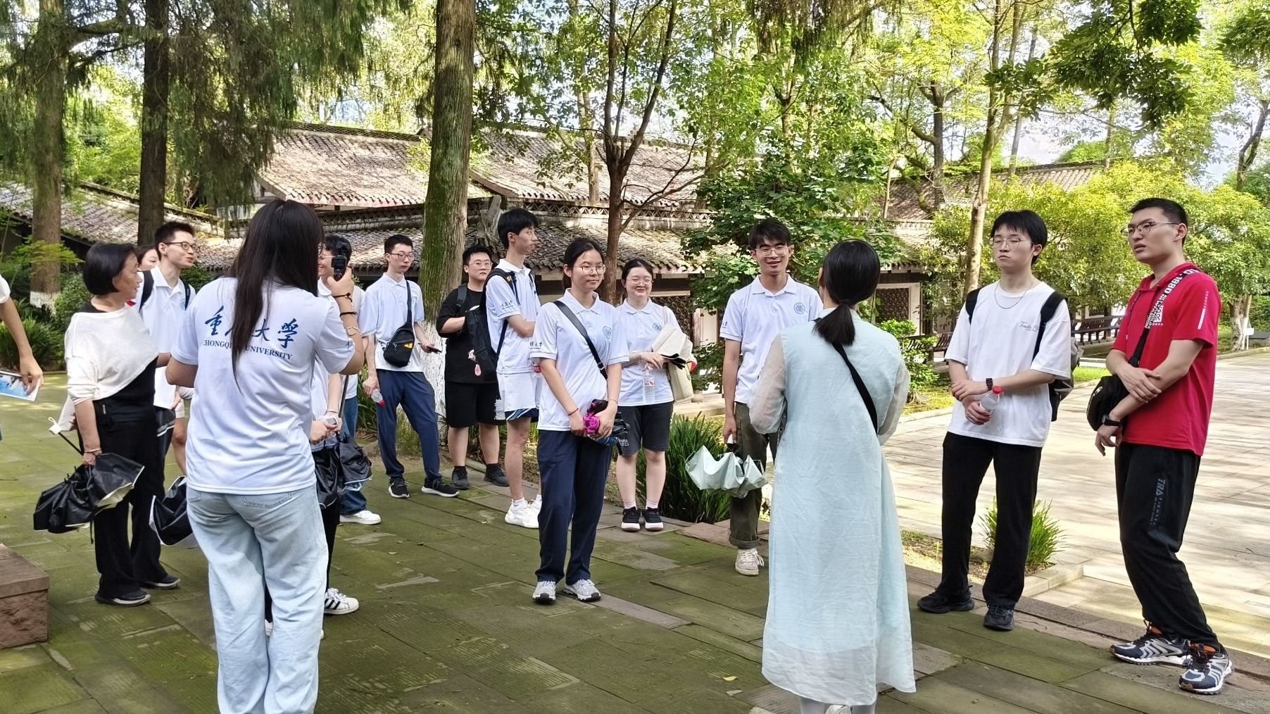 “‘飞流直下三千尺,疑是银河落九天’的豪迈,不仅是诗歌的力量,更是中华优秀传统文化的精神标识,这份文化自信正是‘大思政’教育最生动的教材。”在李白故居太白堂前,讲解老师结合李白诗词中的家国情怀与人生追求,为同学们上了一堂别开生面的户外思政课。