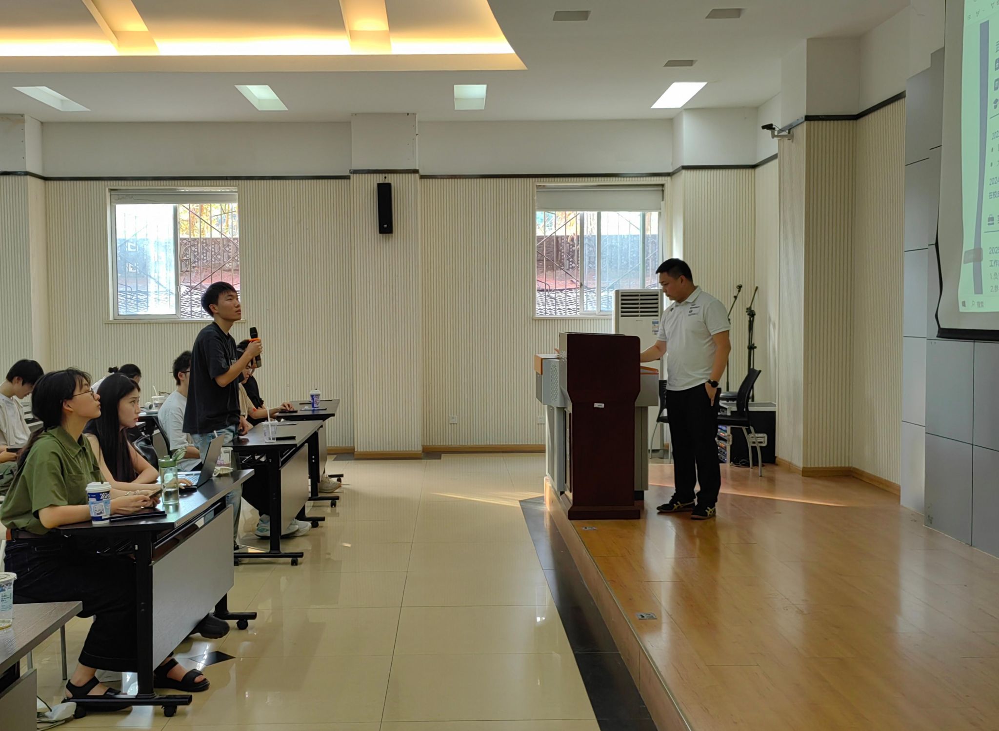 简历抽样点评环节最受关注,他选取在场同学的1份简历进行现场分析,让参与的同学指出此份简历的优势与不足。他指出,此份简历存在“与岗位关联弱”的问题,给出强化技能匹配的修改建议,让学子直观掌握优化方法,现场互动热烈。