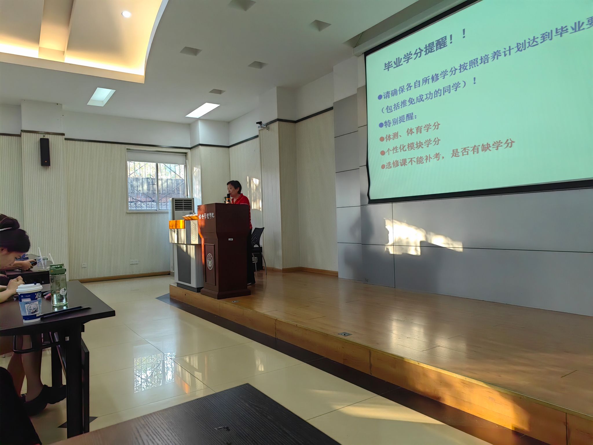 除就业流程外,王丽娟书记还特别进行“毕业学分提醒”,督促全体毕业生(包括推免成功的同学)务必确保所修学分符合培养计划的毕业要求,提醒存在学分缺口的同学及时查缺补漏,避免影响毕业进程。