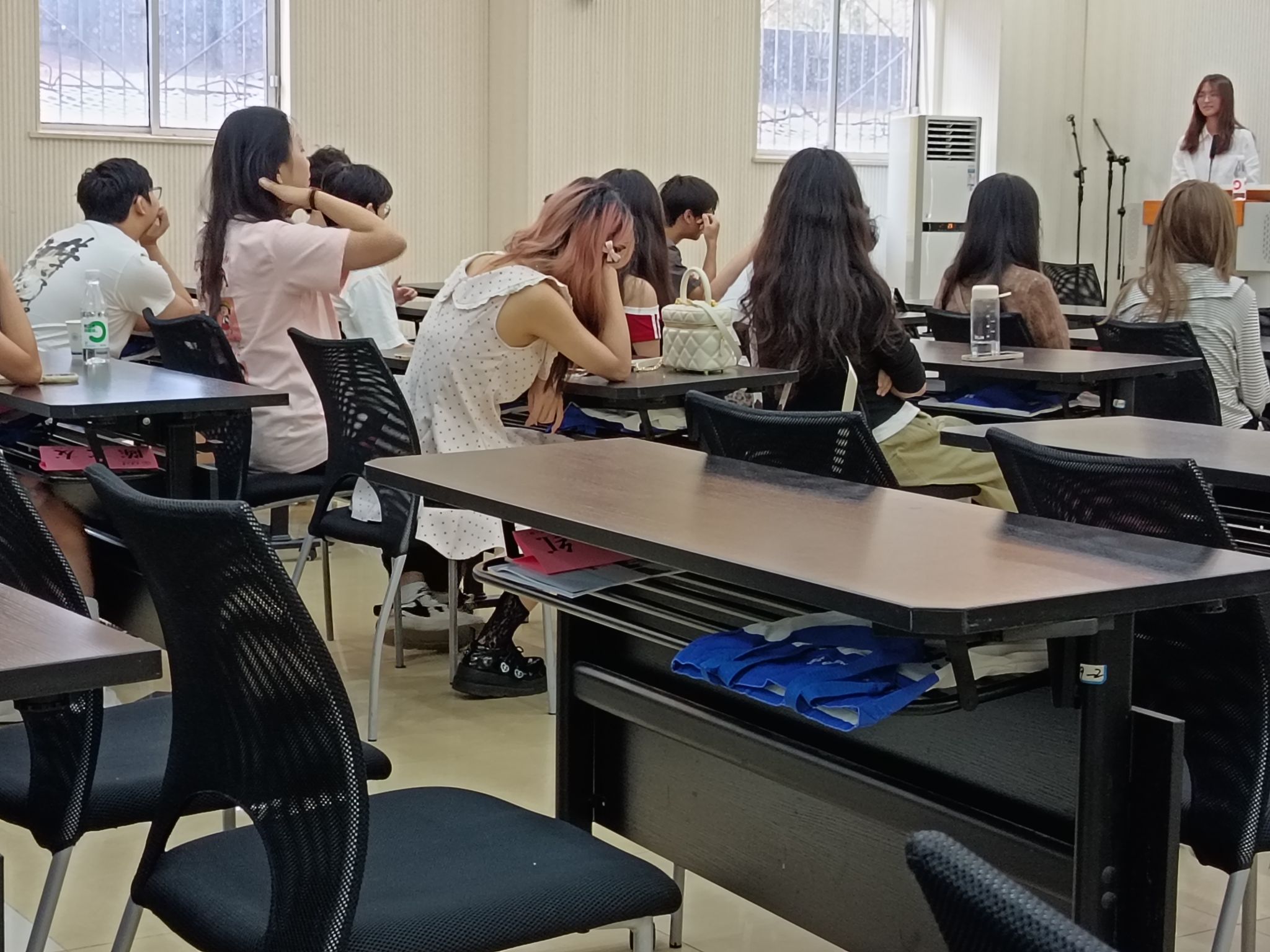 随后,杨佳仙热情介绍了协会指导老师王老师,并详细说明了协会的优势和未来活动计划,同学们表现出浓厚兴趣,现场气氛热烈。杨佳仙表示:“我们期待更多新同学的加入,共同为丰富大学生活、服务同学诉求而努力。”