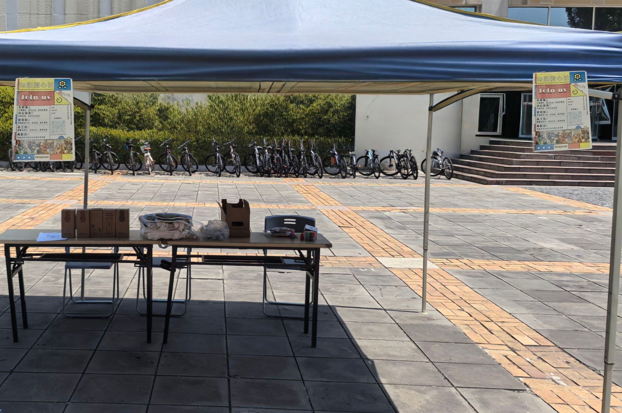 学生向阳爱心社所主办的纳新活动于虎溪校区一食堂南广场和A区小竹林顺利开展并吸引众多学子参与。