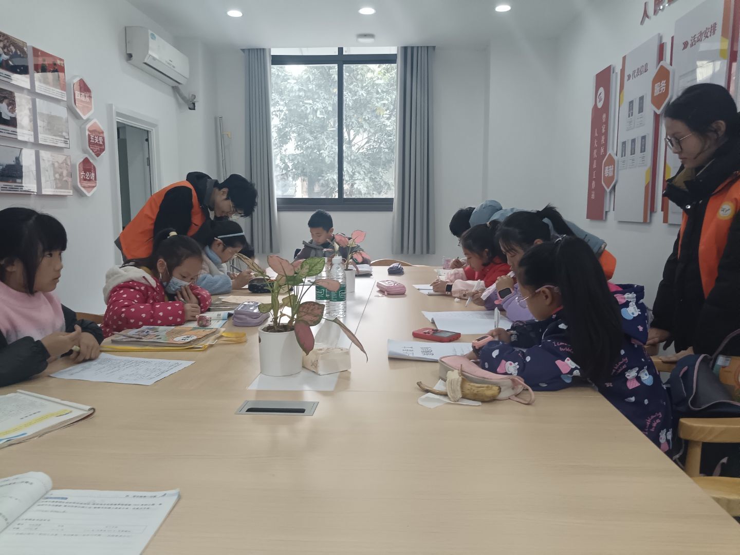 活动当天下午,一支由十名大学生志愿者组成的服务队来到曾家社区,与等候在此的数名小朋友们见面。此次活动以陪伴当地儿童完成作业为主要内容,为孩子们送去了知识的温暖和心灵的关怀。