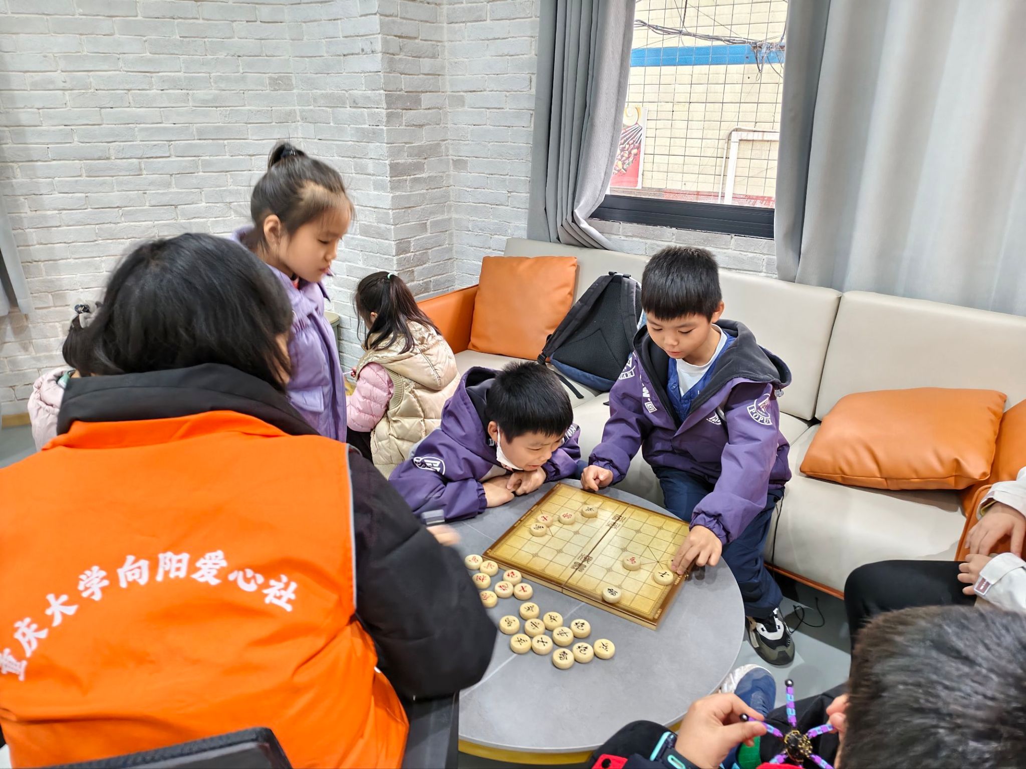 本次活动延续了“大手牵小手”的温情模式,在确保小朋友们安全的前提下,将课业辅导与趣味益智活动紧密结合。志愿者们针对小朋友们不同的学习进度进行一对一作业辅导,并开展了趣味象棋对弈活动。旨在通过寓教于乐的方式减轻学业压力,带领孩子们在棋盘的方寸之间锻炼逻辑思维,感受传统文化的魅力。