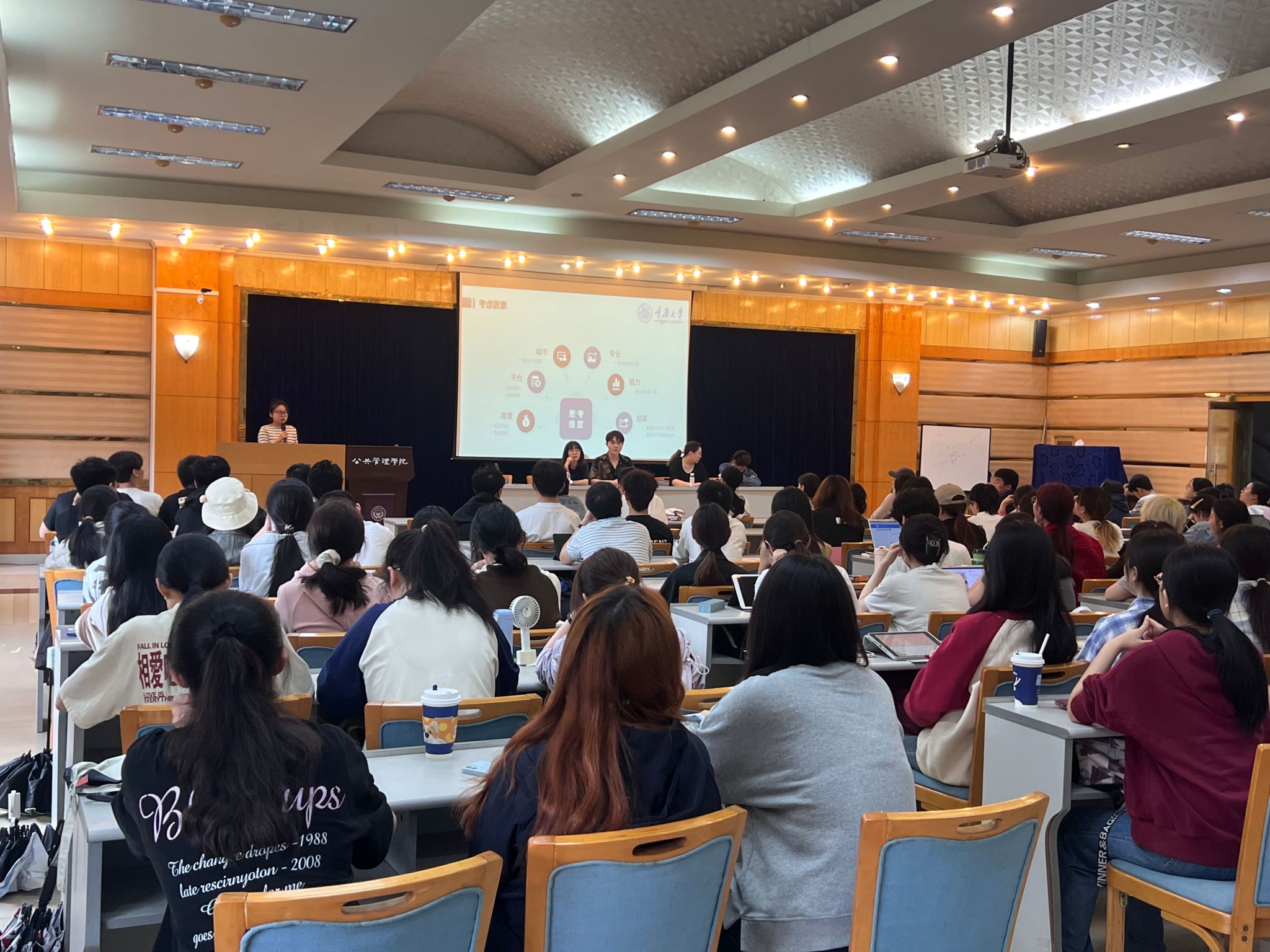 最后还邀请到考取中央选调生的2024届硕士毕业生王琼学姐,以及本科毕业生吴哲、马悦梦璐、陶柏熹、张鑫雨等参加公考和签约企业的优秀代表从制定职业规划、选择职位岗位到简历制作、面试技巧等方面进行了系统而实用的分享。通过生动的案例和亲身经历,他们向学弟学妹们传授了宝贵的就业攻略,为他们的职业发展指明了方向。