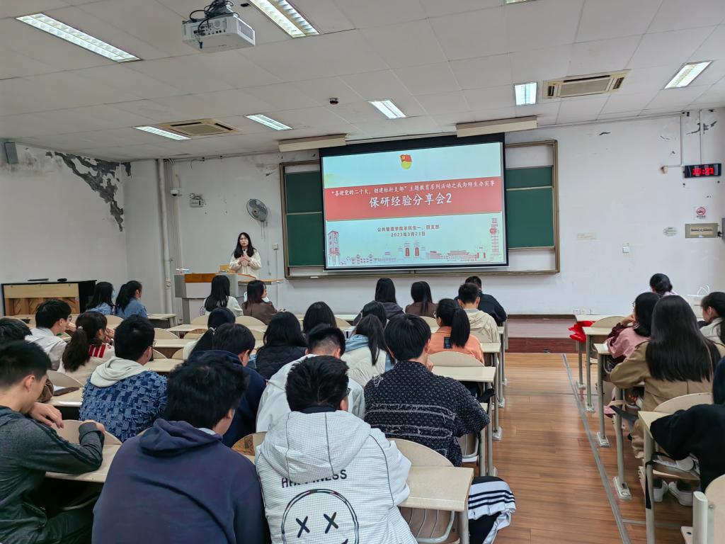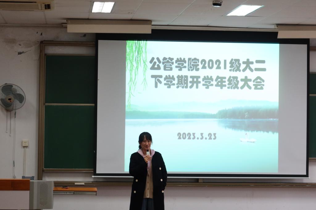 本科生2021级大二下学期开学年级大会暨“师兄师姐去哪了”主题生涯规划首场推免生交流活动在虎溪校区DZ222举行。本次年级大会暨交流活动由学院团委书记、本科生2021级辅导员徐柳老师主持。2021级全体本科生同学到场参加。