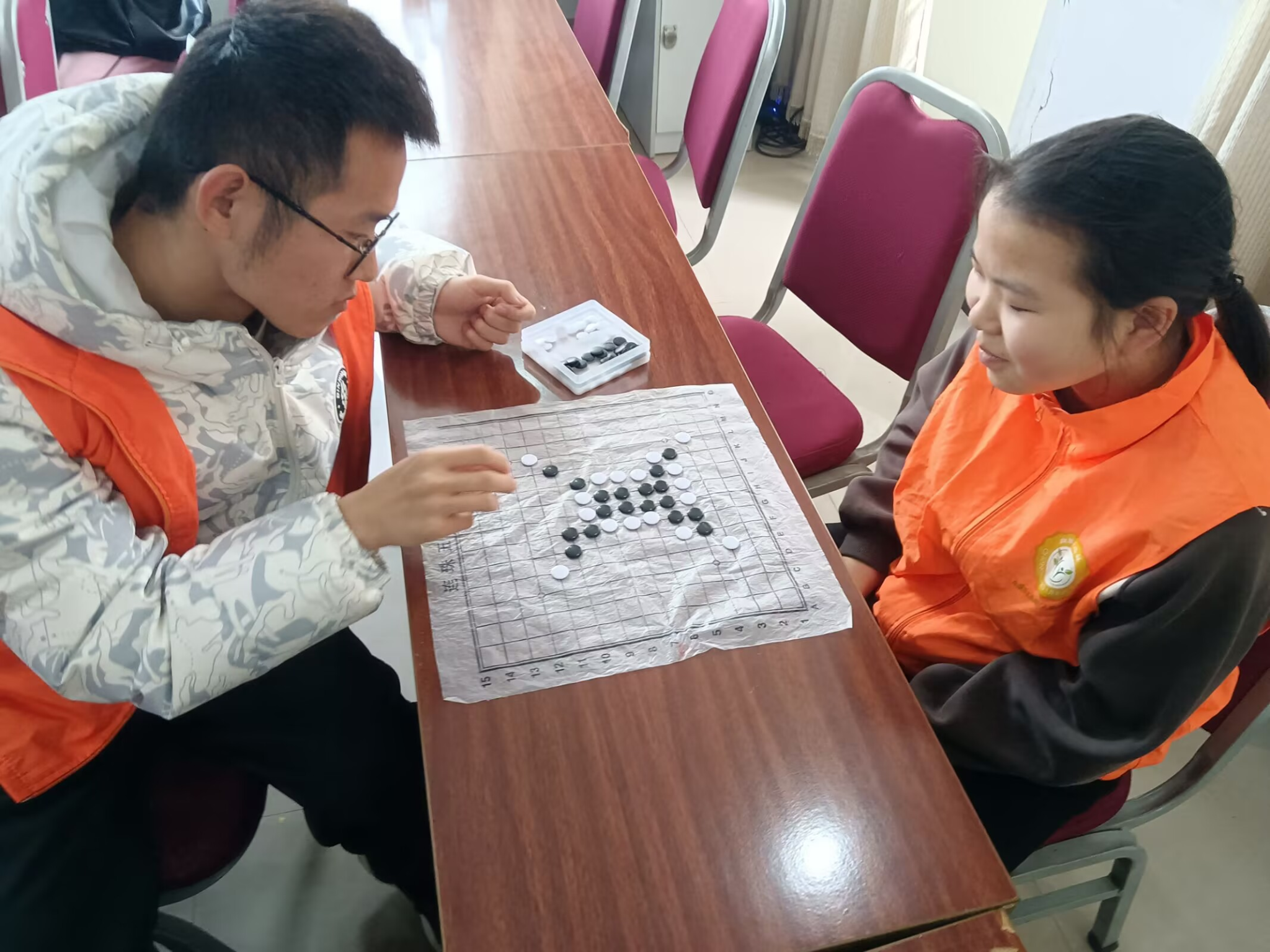 当日,志愿者们按照既定计划,分组陪伴孩子们开展各类活动。小朋友们可以下围棋锻炼思维能力,可以拿起剪刀在卡纸上发挥创造力,可以尝试拼贴培养审美,也可以坐下来和志愿者畅谈。