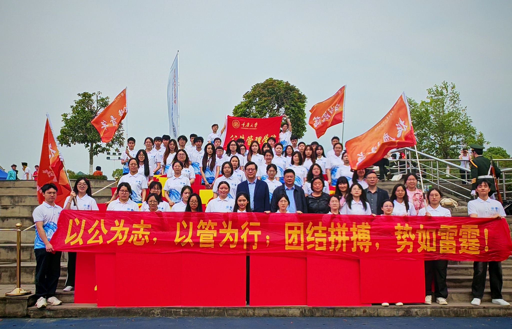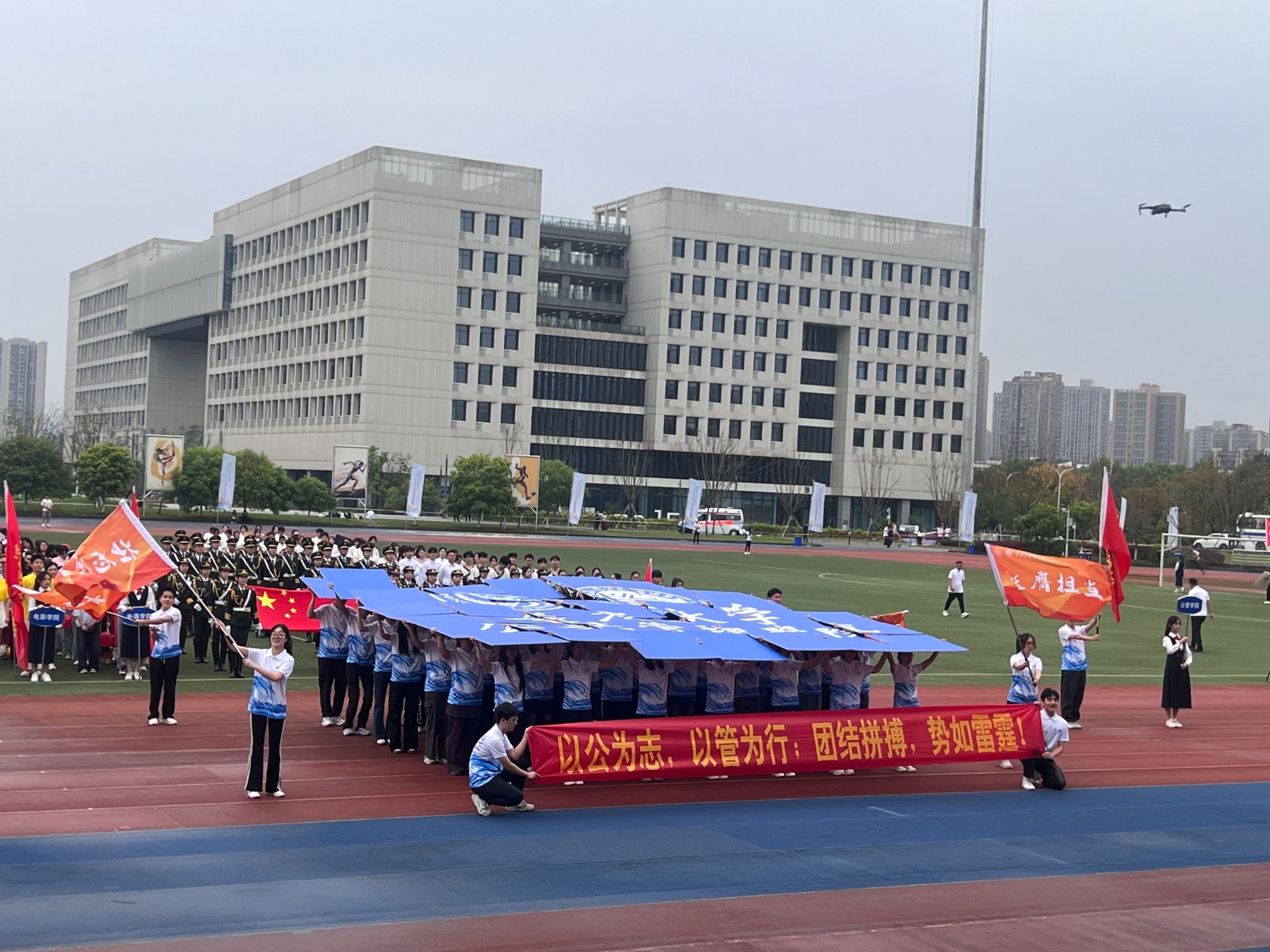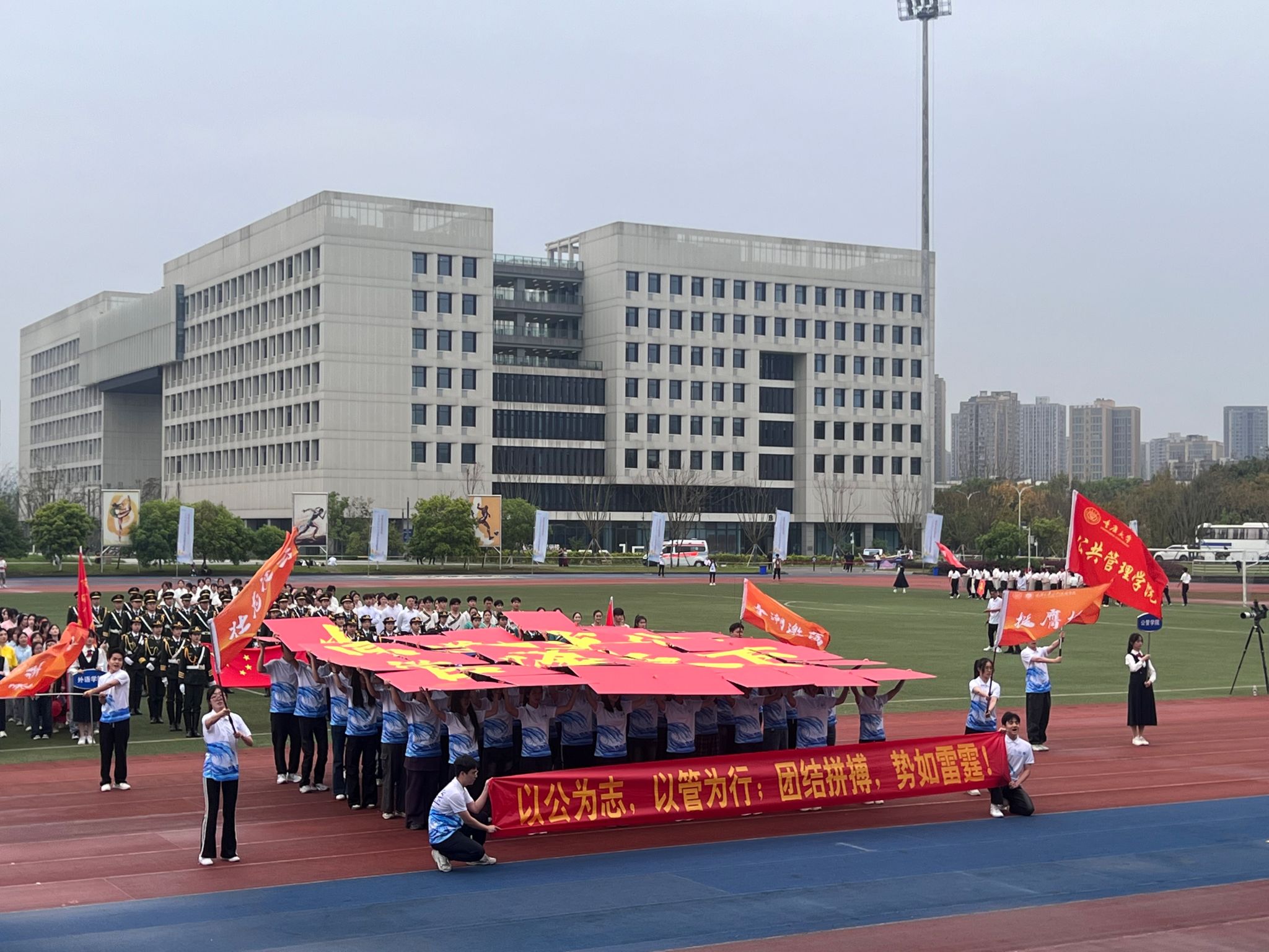 的方阵格外引人注目。同学们精神抖擞,步伐整齐,高喊着“以公为志,以管为行,团结拼搏,势如雷霆!”的响亮口号,手中的口号牌和旗帜在阳光下熠熠生辉。