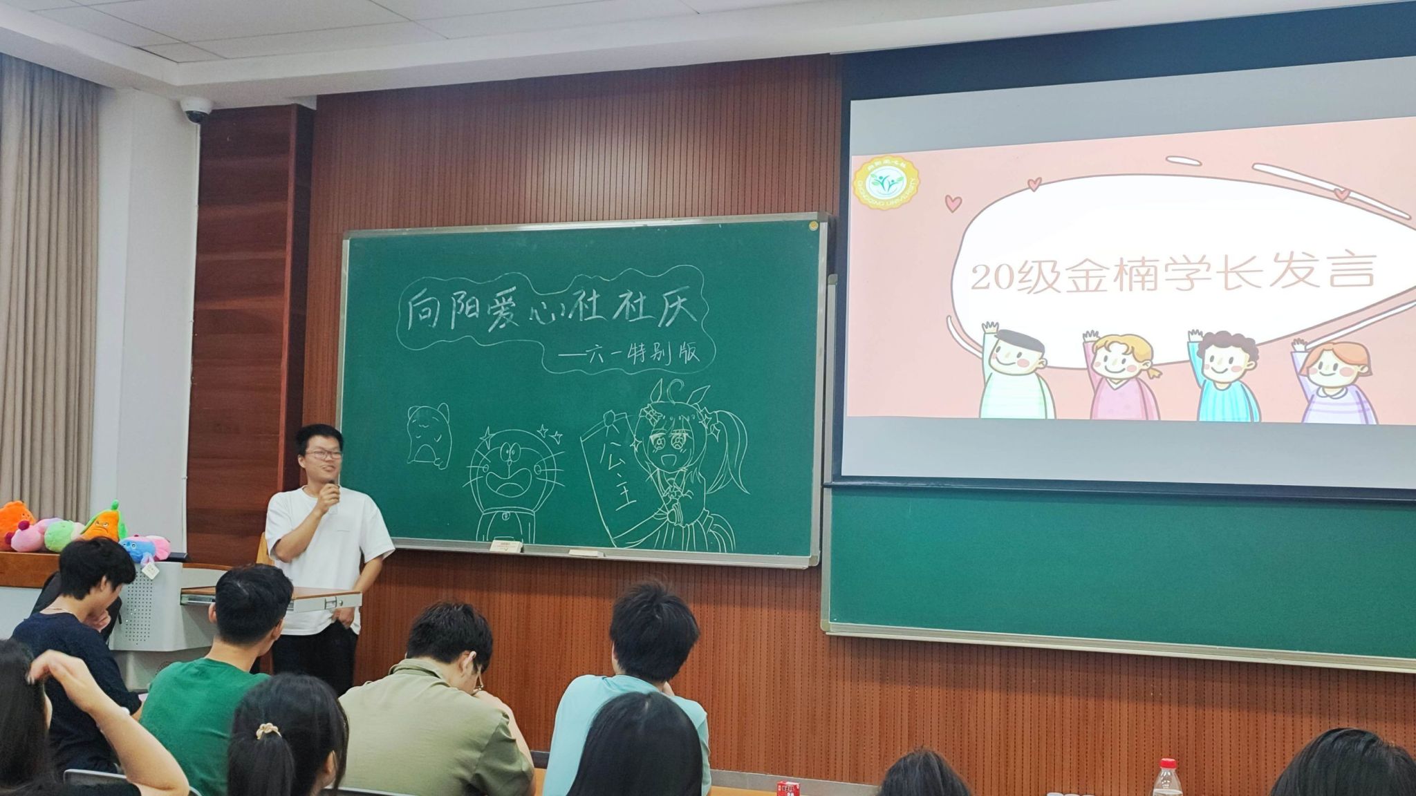 本次社团庆典由刘梦瑶、陈振浩、年兴瑞、郭津诚、刘丹丹、廖晨旭、程星妍、尹煌、张潇同学策划组织。在庆典开始前,参与的同学将写有自己名字的纸条投入票箱参与后续抽奖。社庆开始后,20级金楠学长回望了自己在向阳爱心社的收获,并为所有社团中的学弟学妹送上了暖心的祝福。