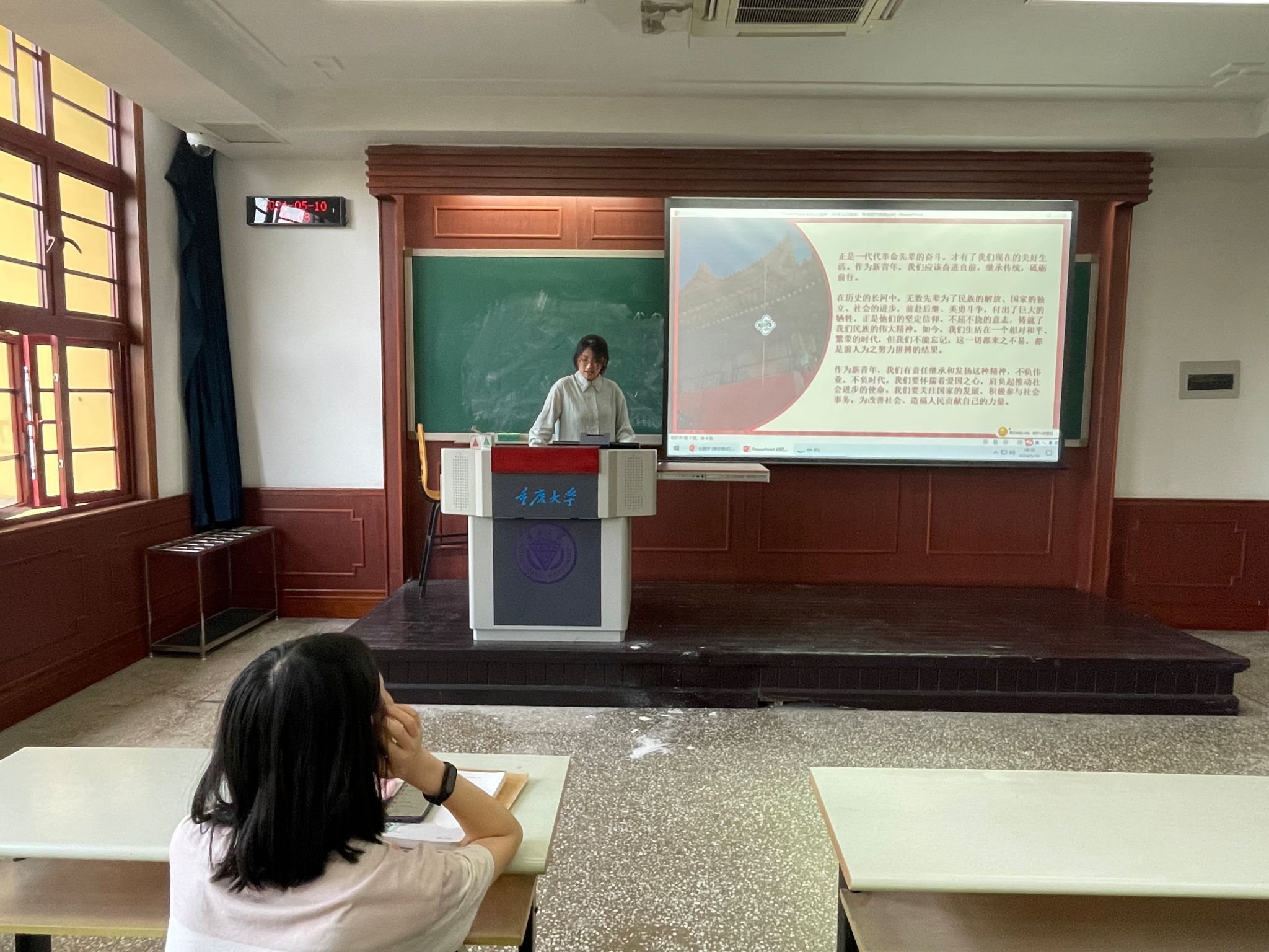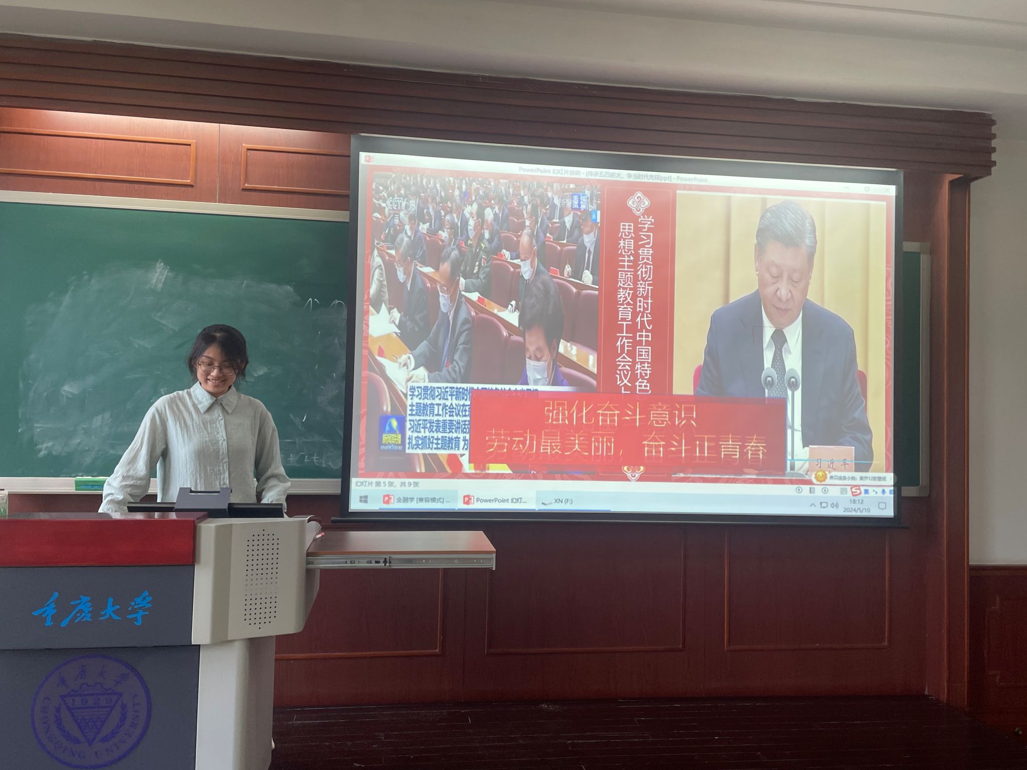 接下来徐琪琦为大家深入剖析了“青春挺膺担当——青春之我,创造青春中国”的丰富内涵。她强调,作为新时代的青年,我们要有敢于担当、勇于奋斗的精神,用自己的实际行动为祖国的繁荣富强贡献青春力量。同学们在聆听中深受启发,纷纷表示要珍惜青春时光,不负韶华。