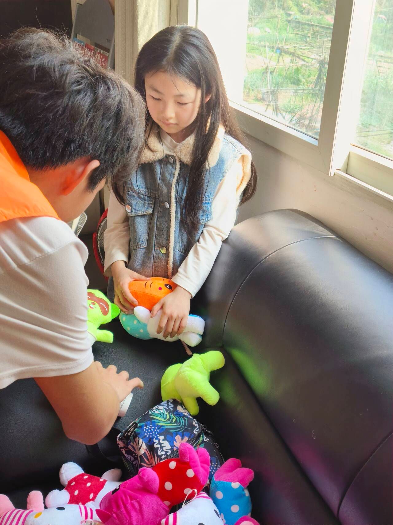 “雷锋月—安林行”活动的志愿者们也乐在其中,他们也同小朋友们一齐吹纸杯,套圈,在小朋友活动的过程中给他们支招,照顾小朋友们的安全。每个志愿者都陪着小朋友们活跃在活动室的每一处。额头的汗水映出他们的辛勤,但它转眼间就被嘴角勾起的幸福弧度冲散,浅浅的笑容,无声地诉说着他们的收获。