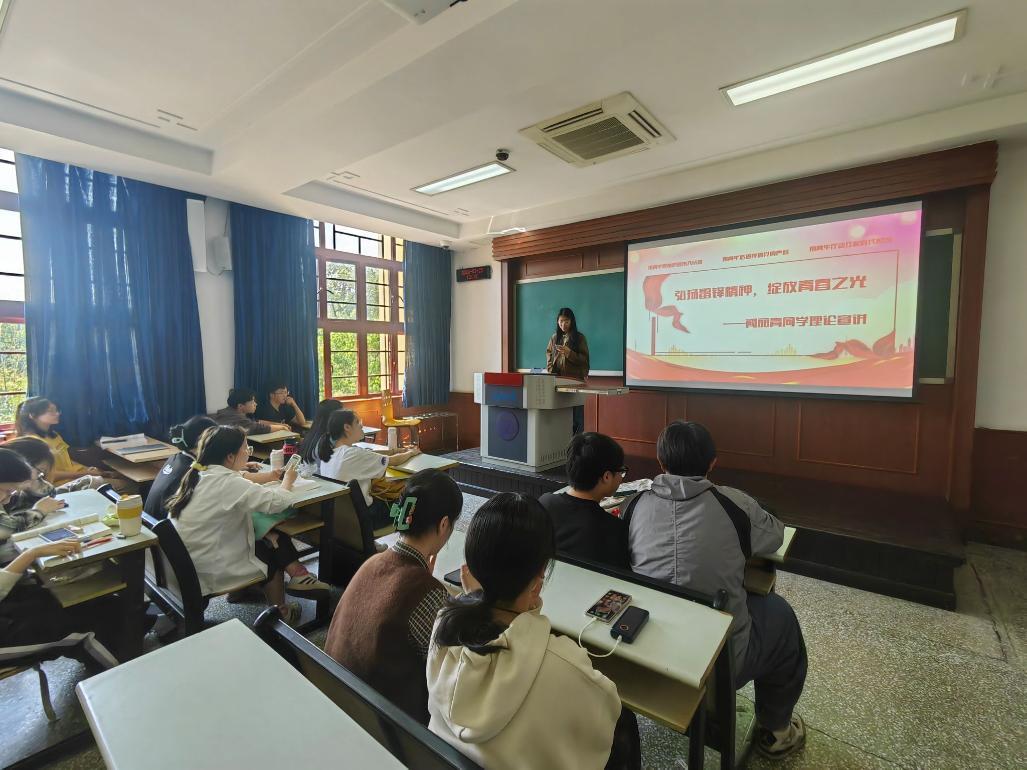 正值三月学雷锋月,该支部还开展了“弘扬雷锋精神,绽放青春之光”理论宣讲活动。阙丽青、黄丹怡同学进行了生动的宣讲。同学们纷纷表示,雷锋精神永不过时,真正的青春,只属于永远力争上游的人、永远忘我劳动的人、永远谦虚的人。青春的我们不是雷锋,却可以成为雷锋。该支部还决定近期安排开展走出校门服务社会志愿服务活动,不断推动“标杆团支部”创建活动出实效、出亮点。