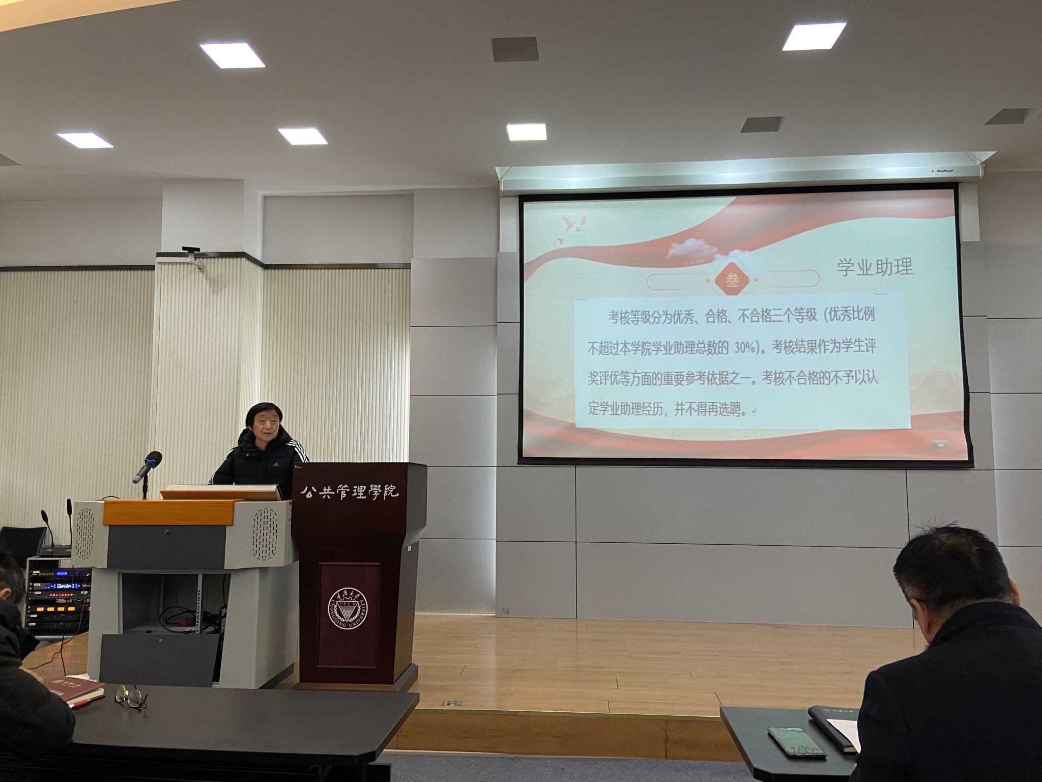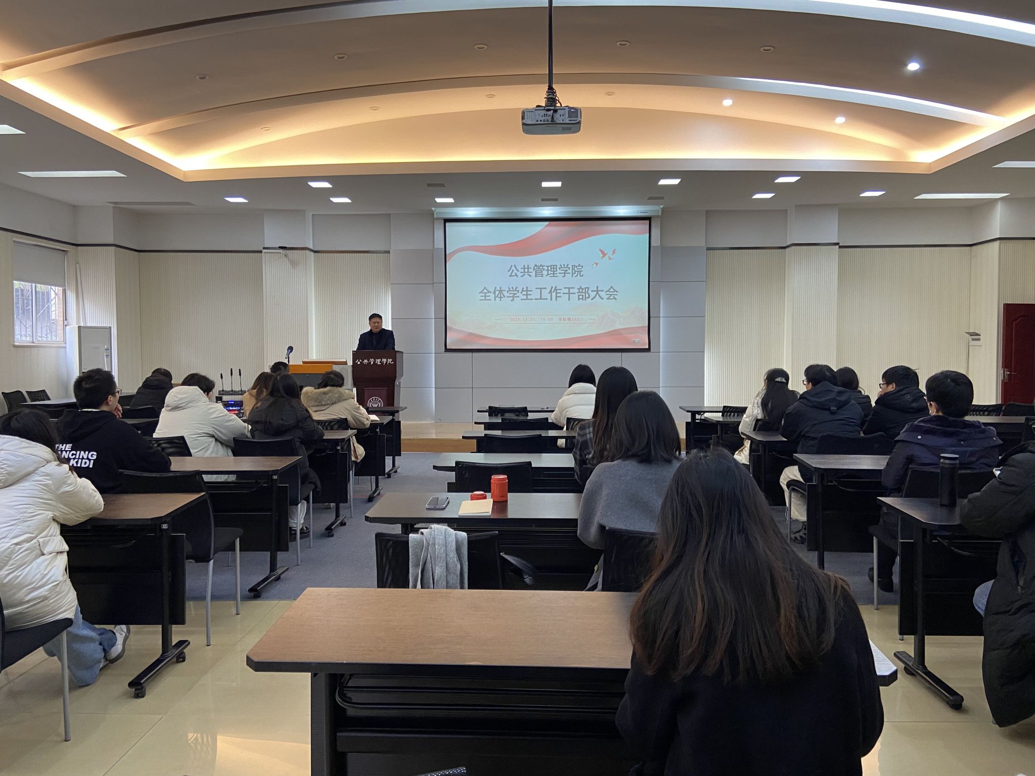 党委副书记、纪委书记周余斌于学院楼102召开全体学生工作干部大会。本次会议由学办主任本科22级辅导员王丽娟主持,学院全体辅导员、兼职辅导员、班主任、学业助理到场参加会议。