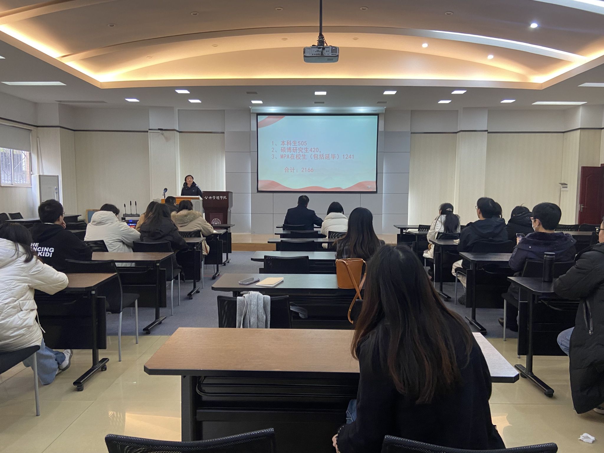 周余斌还对近期学生工作安排进行了介绍。临近考试周和硕士研究生招生考试,应当做好诚信考试教育;面对即将到来的“两节三夜”,做好安全警示教育,预防和遏制火灾、踩踏等事故的发生;在就业工作方面,对“研后专场招聘会”做好宣传和通知工作,同时做好就业跟踪工作。