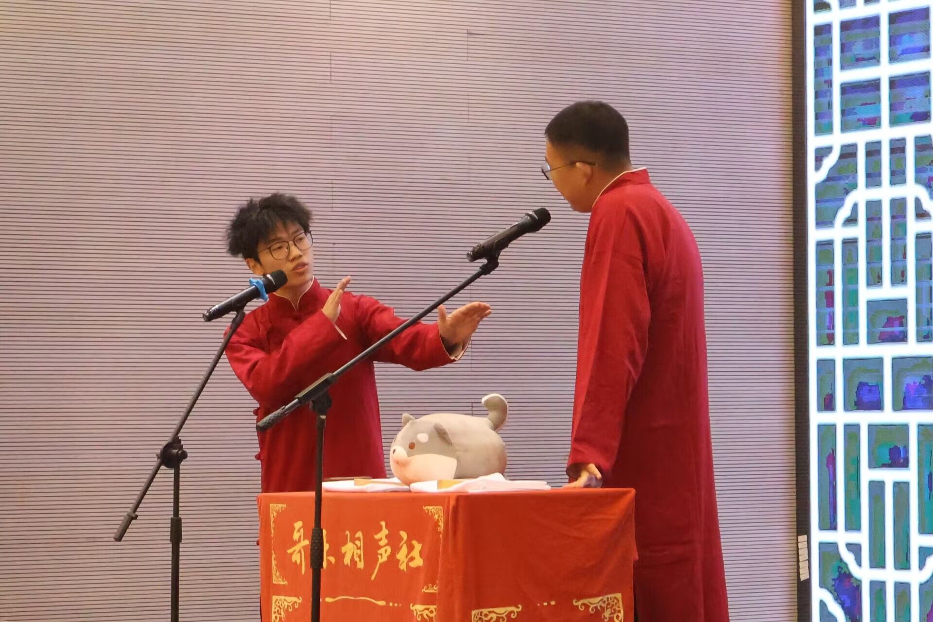 本次哥乐相声社为大家带来的演出节目有:张宏杰、杨皓翔《倒打灯谜》;李磊、彭毅《羊上树》;史若涵、李瑶月《男朋友女朋友》;孔通、王一鸣《欢声笑语》;汪宇昊、蔡澄瑞《味道东坡》;周朗、吕木子《福寿全》。绘声绘色的曲目不禁令人捧腹,为现场同学带来更多欢声笑语。在演出的过程中,观众席时不时爆发出一阵哄笑。这也是哥乐举办新生专场的初心——“传扬艺术,服务同学”。