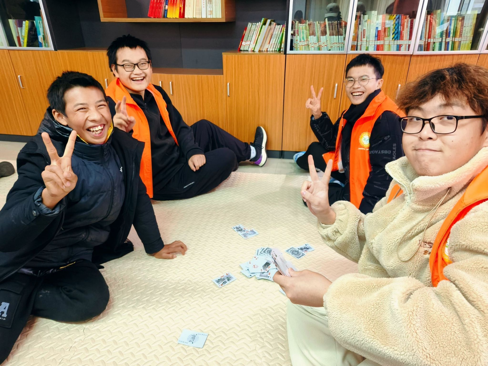 在活动室的另一方天地,志愿者们正在同孩子进行棋牌类的益智游戏。在志愿者们的耐心讲解下,孩子们从开始的生疏到熟练,再到最后的乐在其中。在这个过程中,孩子们对于新事物的接收和学习能力也增强了。希望他们在以后的生活中接触到新事物时也可以如今天般不断学习、成长。