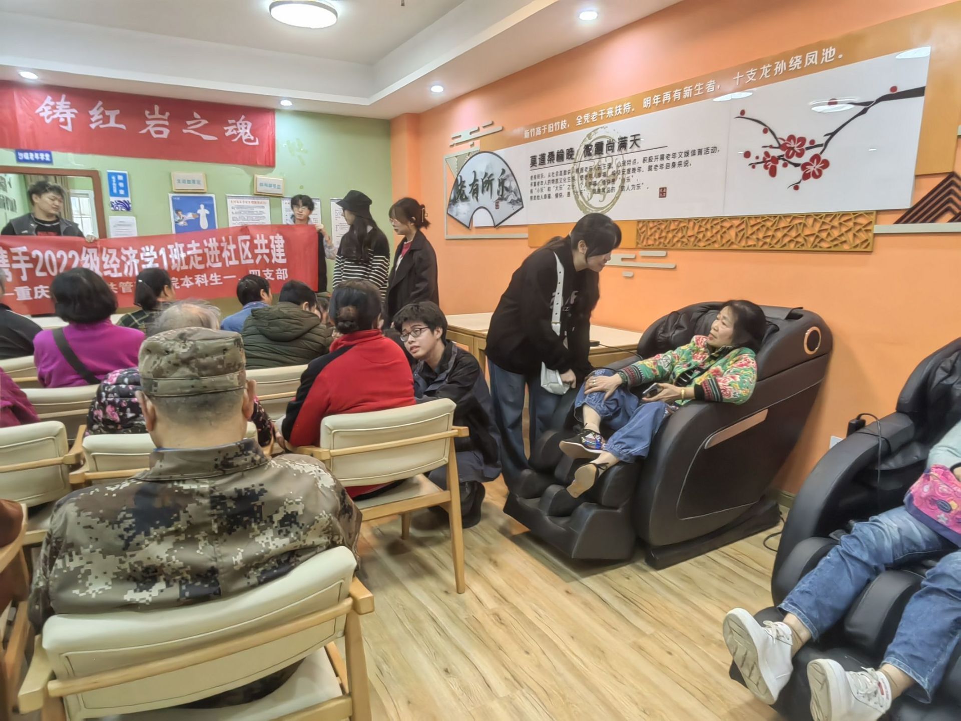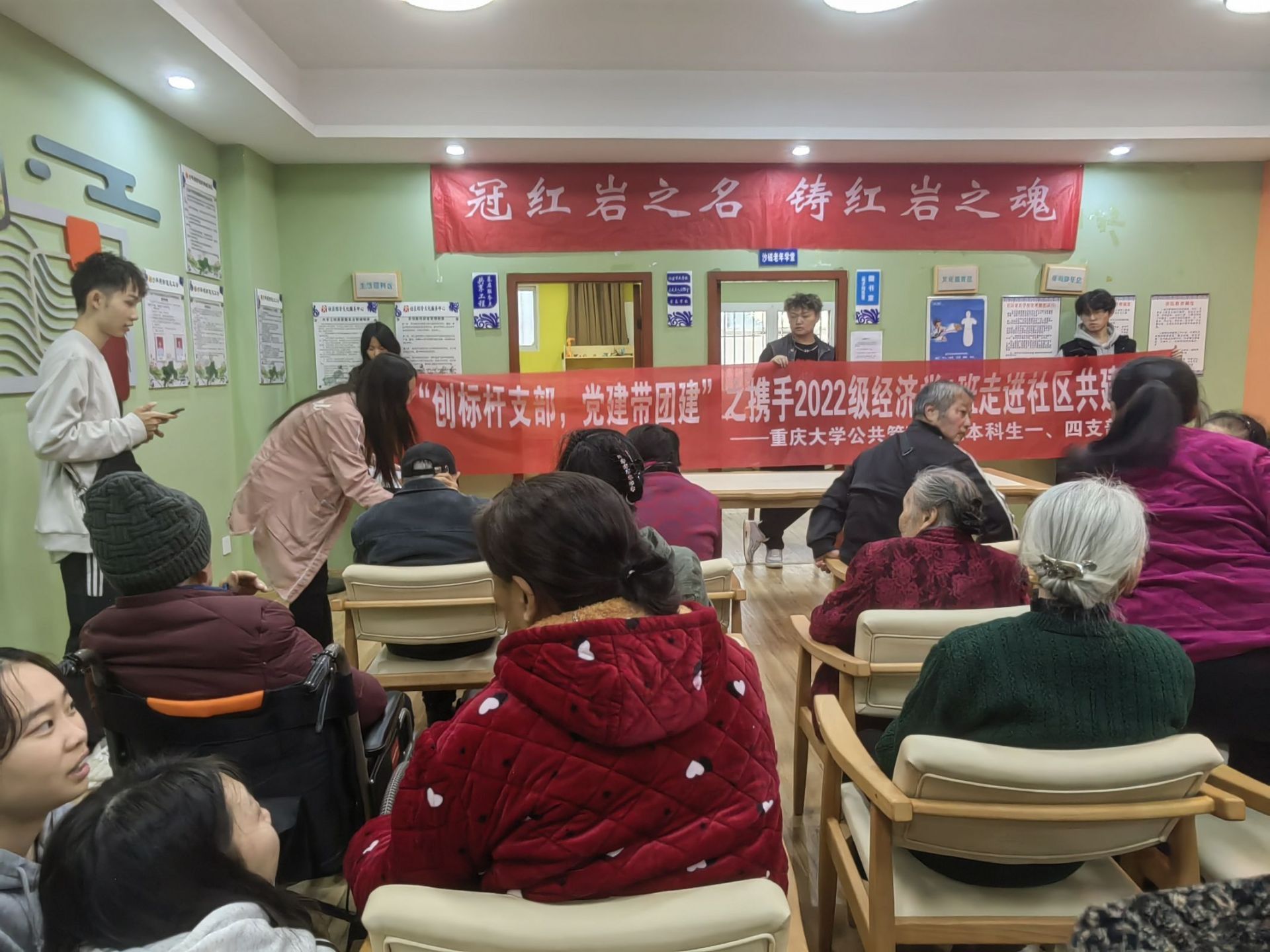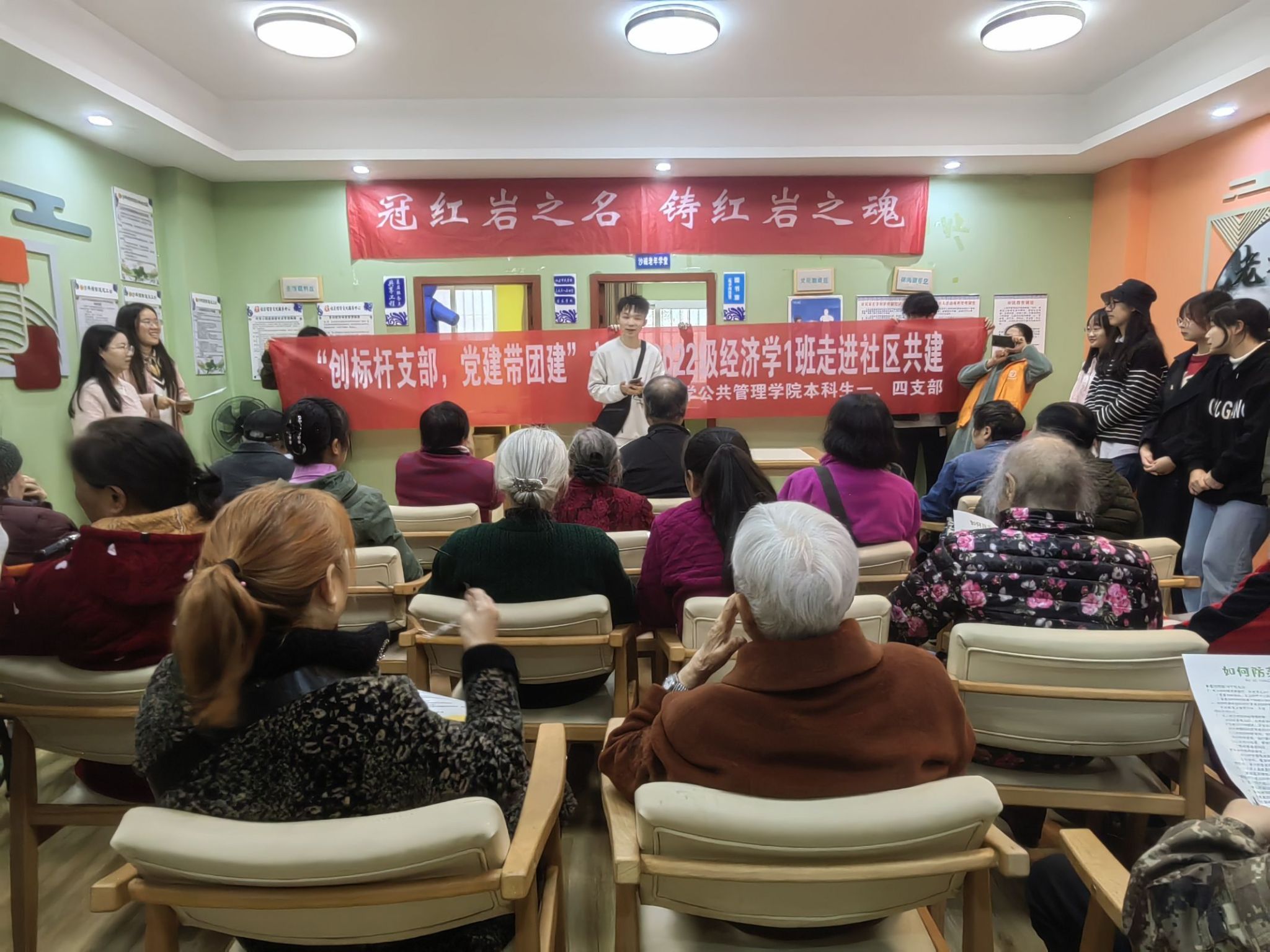 一、四党支部“创建标杆支部,党建带团建”共建进社区实地活动,支部书记辅导员王丽娟到现场动员、鼓励、指导,并推动在场同学与社区的互动交流。活动现场,同学们热情开展主题宣讲,带着精心准备的宣传材料,与老人们互动交流,深入耐心宣讲反诈骗反邪教的重要性,并就老人们关心的问题进行详细解答。场面温馨热烈,展现了大学生朝气蓬勃的一面,也让社区的老人们感受到了大学生们的热情。
