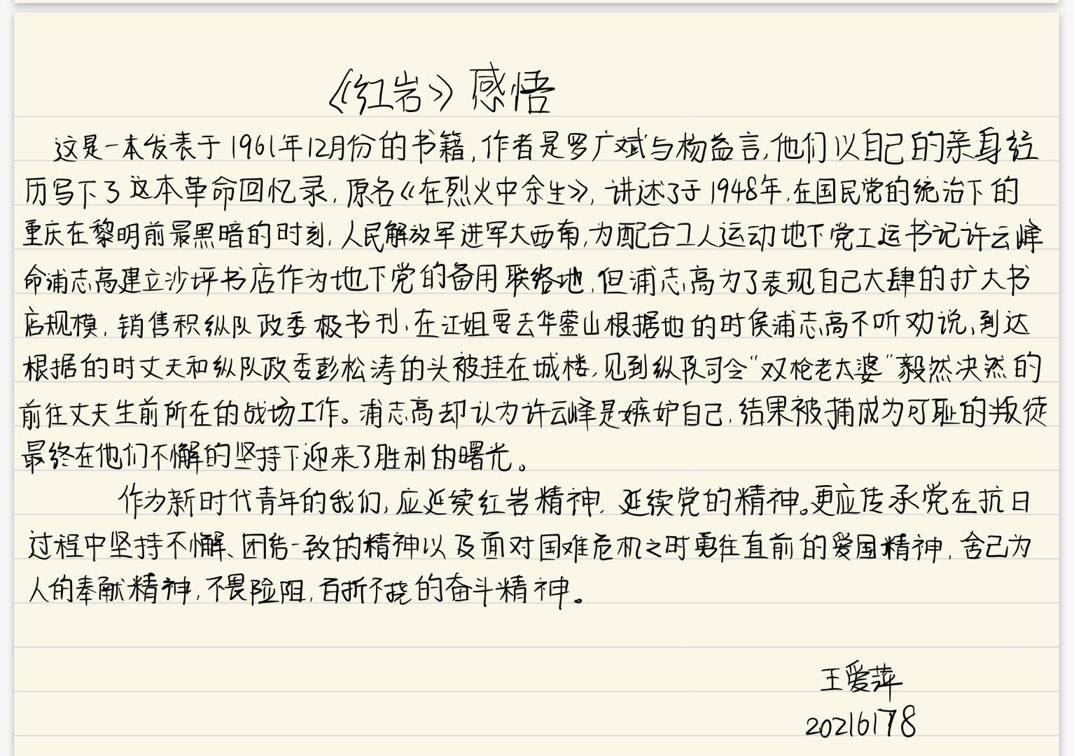 不负韶华,书香同行。伴随着先辈的革命岁月,赓续红色精神血脉。本次阅读分享活动通过摘抄、设计海报及朗诵三种方式进行,摘抄经典片段写下自身感悟、将创新与经典融合的海报、饱含情感的朗诵都表达了同学们的爱国主义情怀。从阅读到作品呈现,同学们从红色经典中汲取精神力量,懂得“身既死兮神以灵,子魂魄兮为鬼雄”的豪情,更是明白当今生活来之不易。初夏时节,同学们沿着红色的历史长河,重读英雄们的艰辛之路,追寻革命先烈们的足迹。