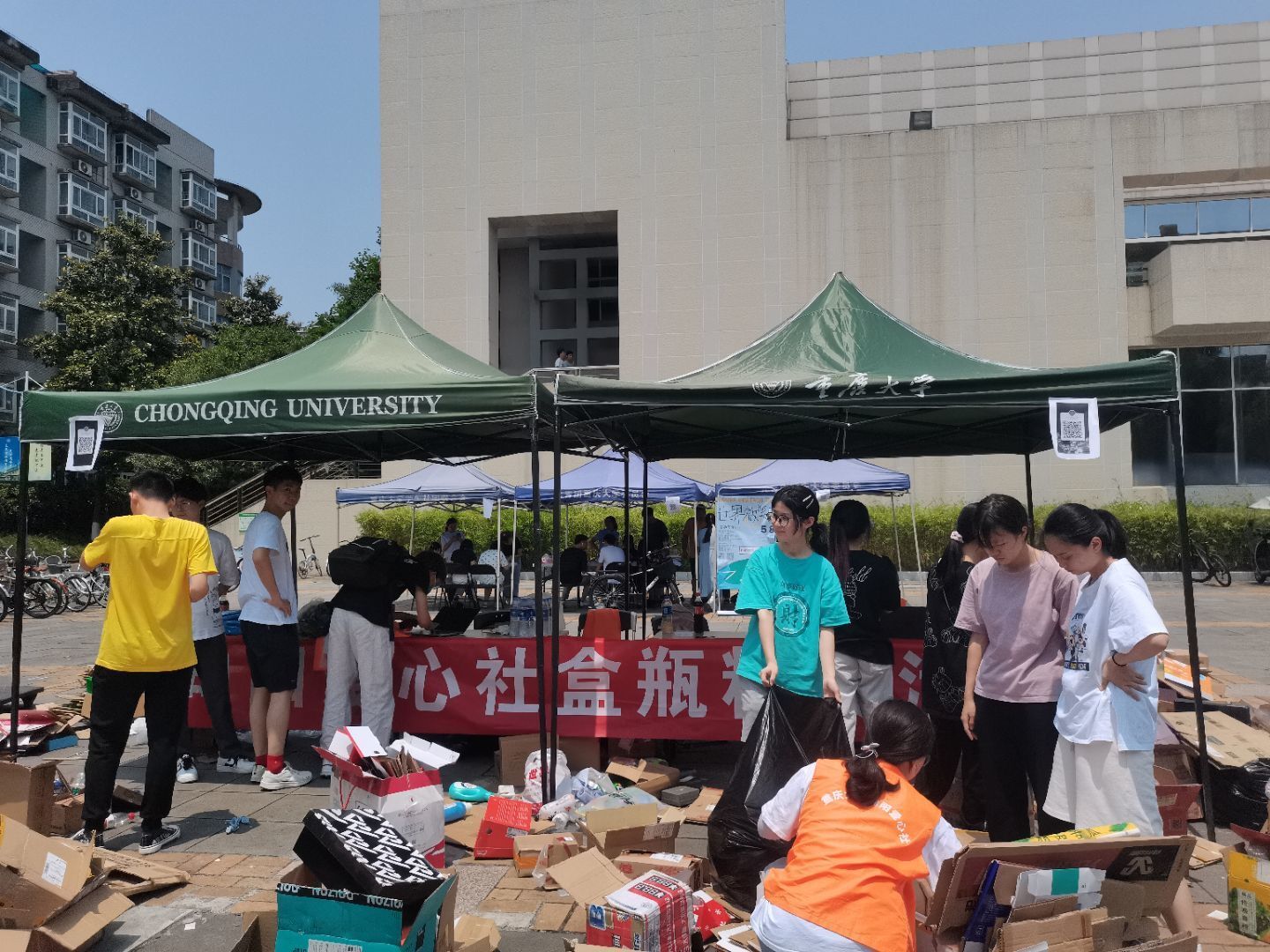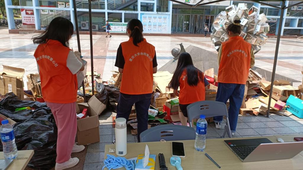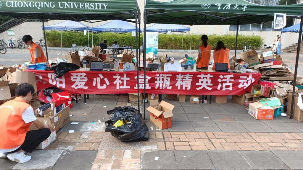 活动现场,“盒瓶精英”们拽来一大兜空水瓶或是一大捆压好的纸板,非常有成就感地交由志愿者。志愿者们在炎热的天气下勤奋工作,将同学们带来的纸盒和空瓶进行回收整理。此外,志愿者们还热情地与同学们交流,细心地给同学们讲解垃圾分类的相关知识。活动结束后,向阳爱心社的同学们将回收来的资源交给了专业的垃圾回收站,并将换取的资金用于给广东省北坑小学的学生们购置文具用品,这使本次活动有了更为深刻的意义与价值。