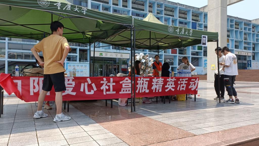 盒瓶精英活动在第一食堂广场和二食堂广场设置了两处回收站,并进行宣传吸引同学们参与资源回收。通过前期的宣传,很多同学获悉该活动的相关情况,并了解到了资源回收的重要性,有意识地将日常生活中的可回收资源保留下来进行资源回收。