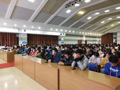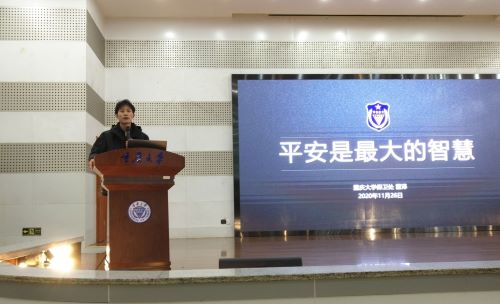 虎溪校区一食堂小剧场成功举办“平安是最大的智慧”主题讲座。本次讲座由学校保卫处雷泽老师担任主讲人,学办主任兼19级辅导员王丽娟主持,20级辅导员李珊珊及18、19、20级全体同学准时到场参加了本次讲座。