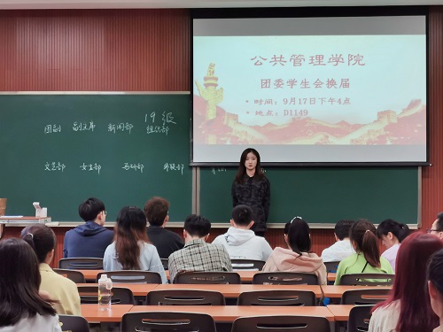 会议最后,王丽娟老师简要阐释了各部门的工作后,对本次换届大会发表了总结,她表示,新一届的副部长们要积极向主席团成员和各部门部长请教经验,细心沟通,踏实做事,积极参与。各位主席团成员、各部门部长要明确肩负的责任,积极指导下一届团委学生会成员,不断增强团委学生会的凝聚力和感召力,充分发挥桥梁和纽带的作用,把广大同学紧密联系在一起,为团委学生会的建设作出更大的贡献。