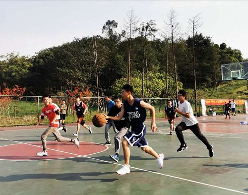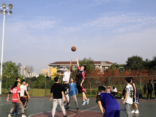 随着一声哨响,篮球被竖直抛向空中。原本凝滞的赛场瞬息万变。球员们蜂拥而上抢夺篮球,在球场上自如地奔跑,跳跃。上半场刚刚开始,各队球员很快便进入状态。经三与公四的冠军争夺赛尤其精彩,两队可谓强强交锋,场上形势变化不断。公四队取胜欲望强烈,开场即对经三快攻猛打,丝毫不给经三队喘息的机会。也许是没有摸透对方战术,经三队在上半场的比赛中总体处于被动的局面,赛场局势基本由公四掌控。上半场结束,公四队领先11分。中场休息时,场上各队球员迅速跑至休息区补充体能,调整战术。
