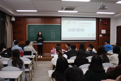 在经过一轮面试中的无领导小组面试以及分部门面试,各位同学都对院团委学生会的组织架构和部门职能有了更加清晰的了解。在主持人宣布纳新答辩正式开始后,同学们按照次序大方自信地走上讲台,经行时长一分钟的自我介绍以及阐述对竞选部门的想法,再由评委打分。