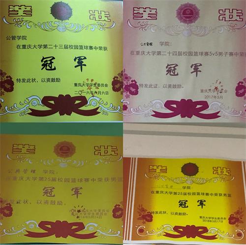 的特色项目之一,一张张奖状上“冠军”的字样格外分明,这是对公管男篮历史的一次回顾,也是对13年来所有队员挥洒汗水、顽强拼搏的肯定。