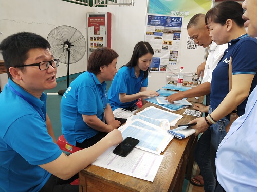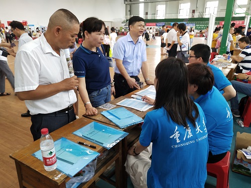 广西的六月夏日炎炎,但丝毫不影响广西的学生和家长前来咨询的热情。进行宣讲的这几天现场人山人海,许多学生和家长特地闻声前来。据悉,招生宣传组分三路挺进八桂大地,第一条线路是百色——柳州——河池,参与宣传答疑人员有王丽娟、王辉老师以及两名学院大二学生;第二条线路是贵港——梧州——桂林,参与人员有颜丽华、沈珊和谭新雨老师;第三条线路是南宁——北海——钦州,参与人员是杨宝、罗伟华老师和王超同学。三路人马,走遍广西10个城市,只为广纳人才,建起巴渝之地和巴蜀之地的桥梁。