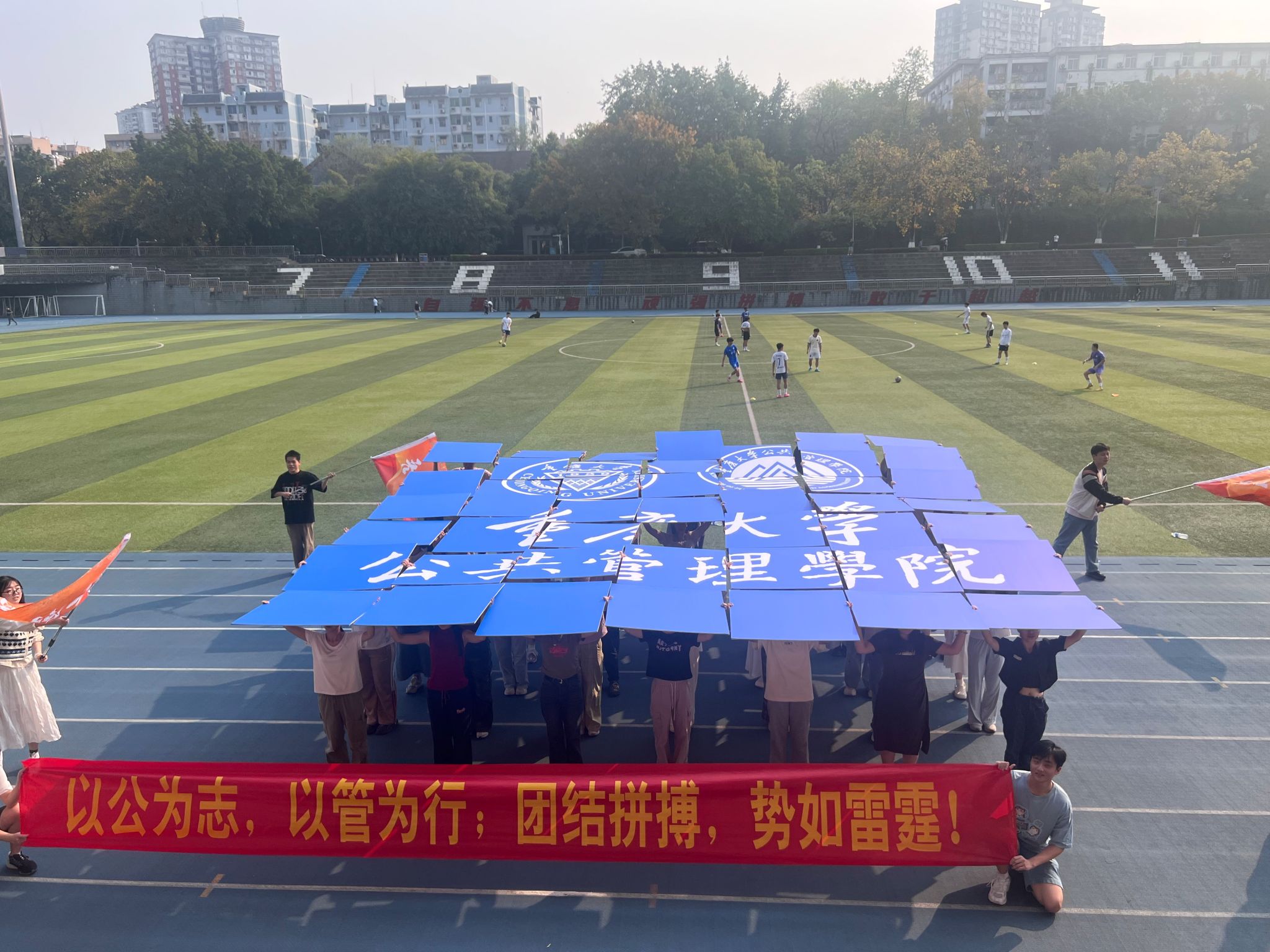A区思群广场进行了多次的排练,徐柳老师和王丽娟老师都到场指导。相信同学们都将以最好的状态展现出他们的排练成果,为运动会增添更多的色彩和活力,在运动会赛场上展现出公管学子的飒爽英姿与卓越风采。