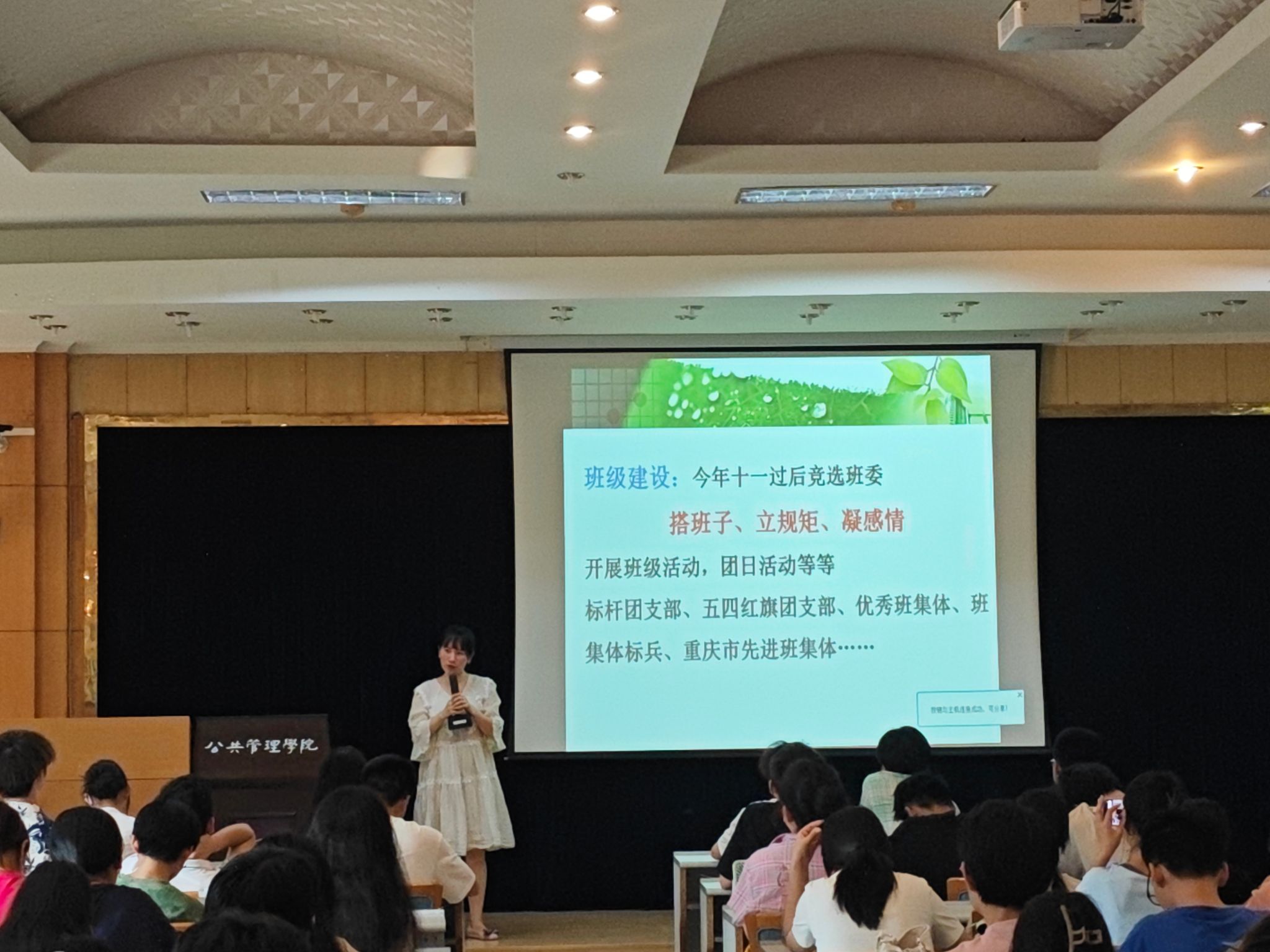 搭建积极向上的班团组织。徐老师为2023级刚刚组建的班级和团支部提出了“搭班子、立规矩、凝感情”三大法宝,希望各班通过主题班会和团日活动对班级成员进行思想引领,通过组织志愿服务、校园文化、体育比赛等活动促进班级成员交流和锻炼,提高集体凝聚力和影响力,为班级同学营造健康积极的成长和发展环境。