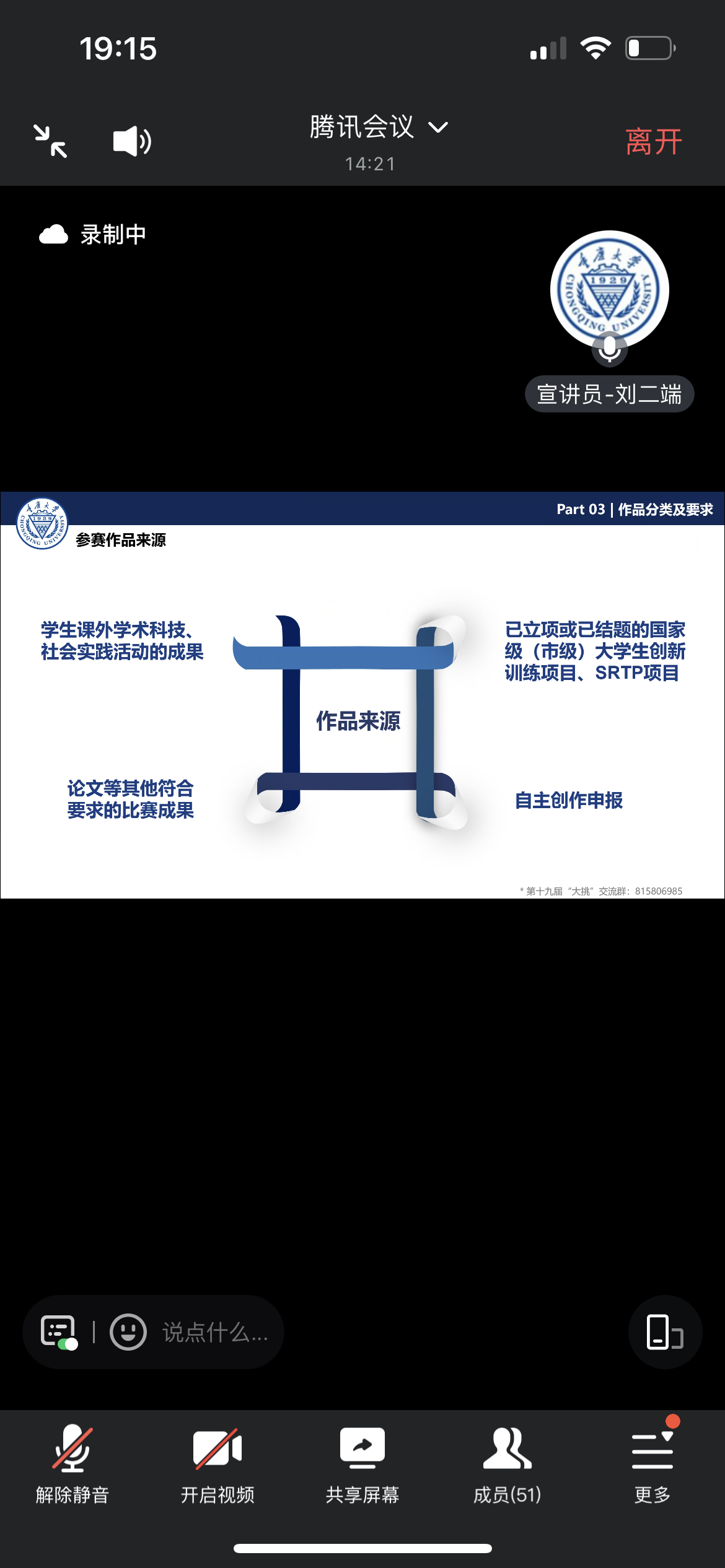 校团委创新创业中心,于腾讯会议线上开展了第十九届“挑战杯”全国大学生课外学术科技作品竞赛宣讲会,全面介绍了赛事规则、分享了往届获奖经验、以及解答了同学们关于项目与申报的各类疑问。