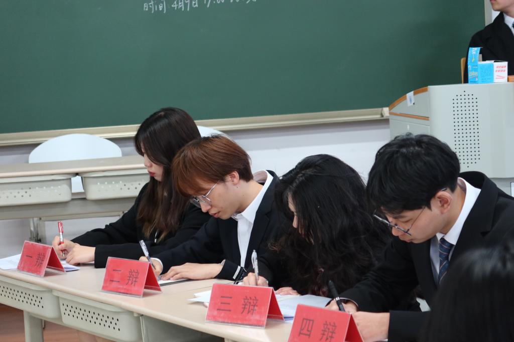 辩论队对阵的是环境与生态学院辩论队。两支队伍旗鼓相当,比赛现场紧张而又激烈。